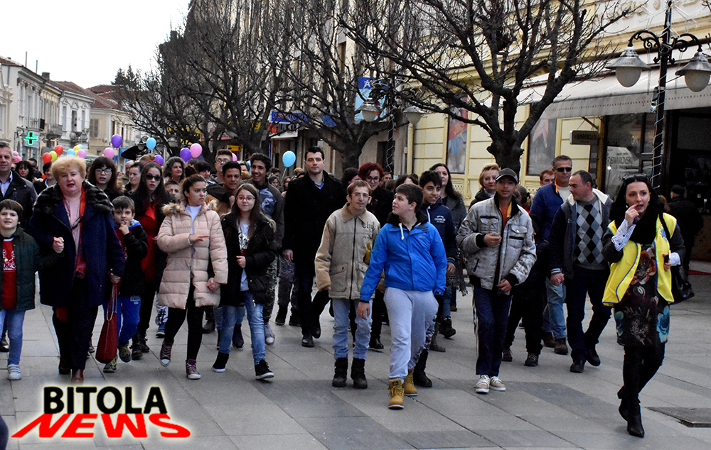 Двете групи учесници на дефилето, се сретнаа на Широк Сокак кај хотелот “Епинал“ и со пуштање на голем број на балони во воздух, го одбележаа Меѓународниот ден на лицата со инвалидитет, а беше соопштено и дека 70 деца штитеници од Заводот за рехабилитација “Кочо Рацин“ од Битола, ќе ја добијат “сензорната соба“.