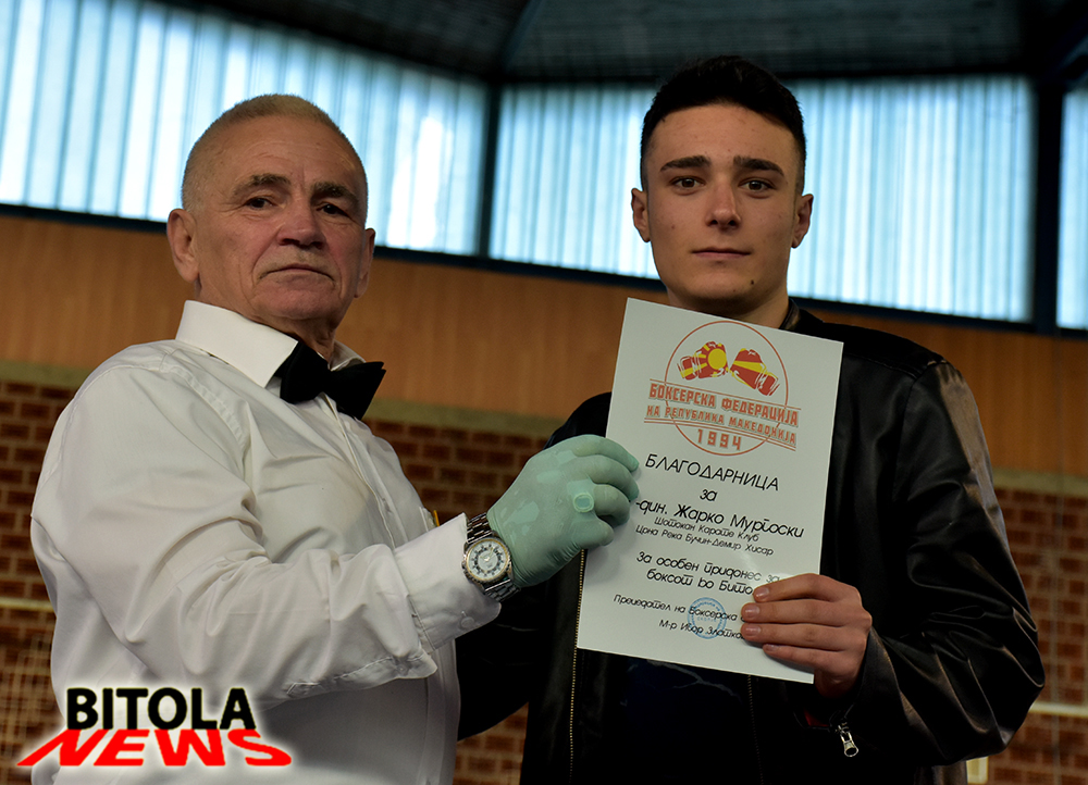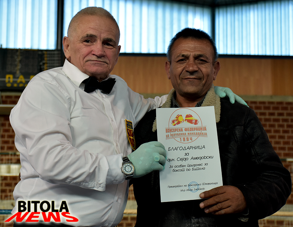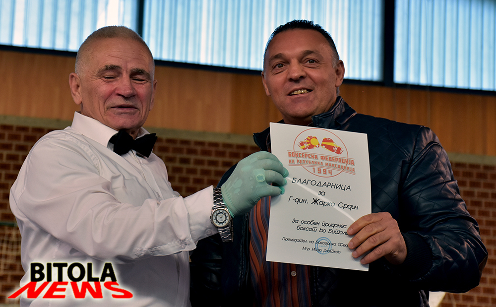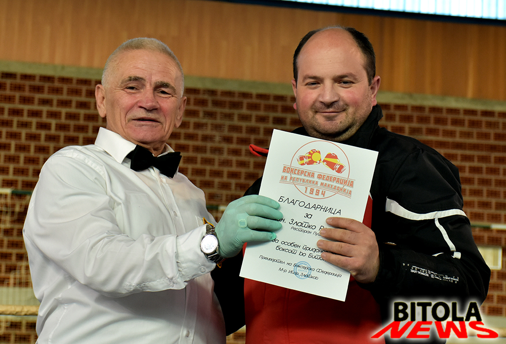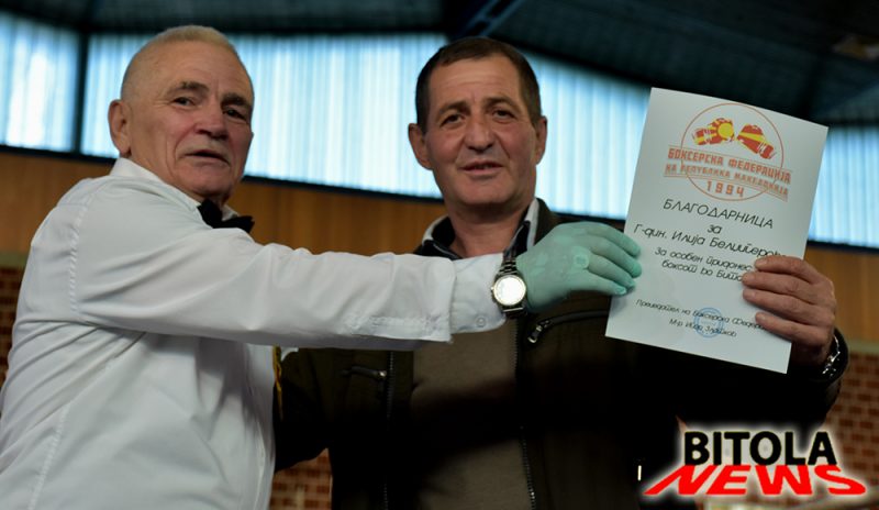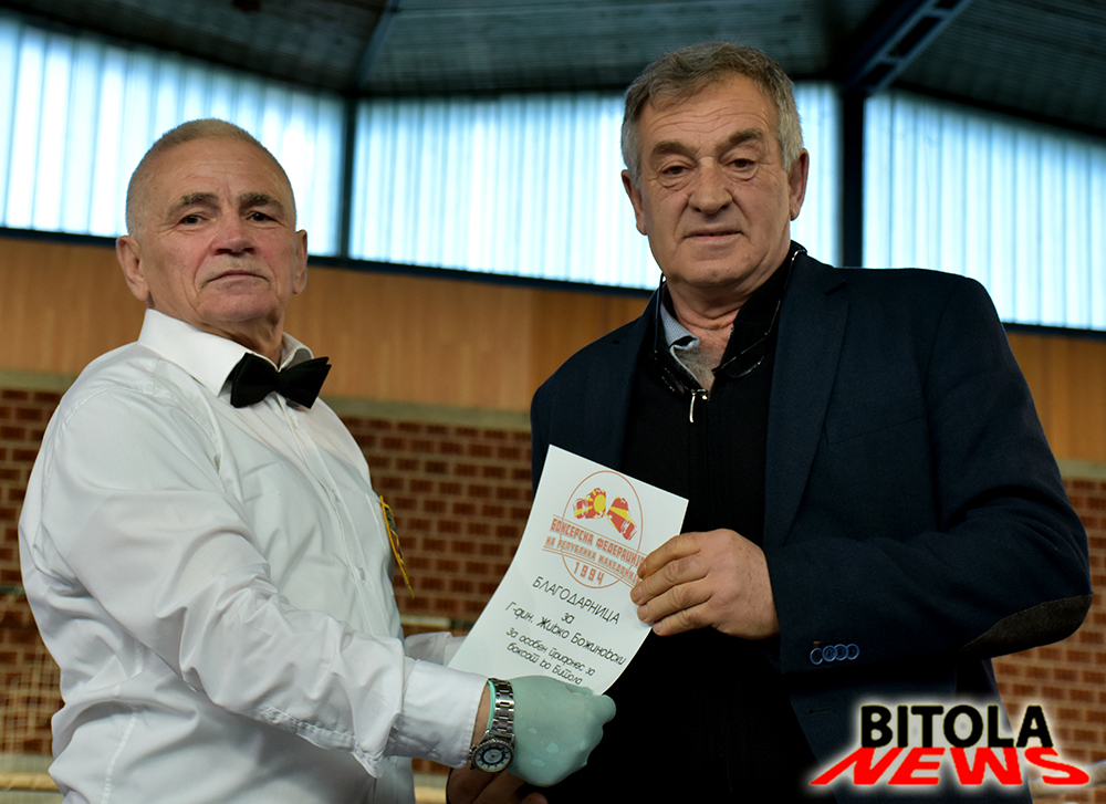 АИБА судијата од Битола, Цане Георгиевски, во име на Боксерската федерација на Македонија на рингот “Младост“ ги додели благодарниците на познатите боксерски работници кои дале придонес во развојот на боксот во Битола.