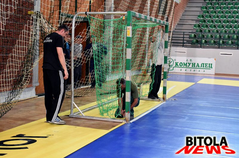 Неколку екипи денес на пладне работеа во спортската сала “Младост“ во Битола средувајќи ги последните детали за утрешното отворање на завршницата од ракометниот куп на Македонија. Откако се постави новата герфлор подлога над паркетот на теренот, денес се поставуваа и головите и се поставуваа мрежи, а се работеше на комуникациските врски, радио, тв и интернер опремата.Сите активности во салата “Младост“ ги контролира претставникот на Ракометната федерација на Македонија – Ќамил Металари, а во салата ги забележавме и претставниците на двата битолски клуба Пелистер и Еврофарм Работник.