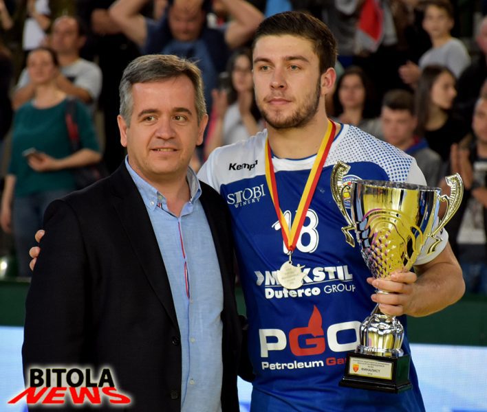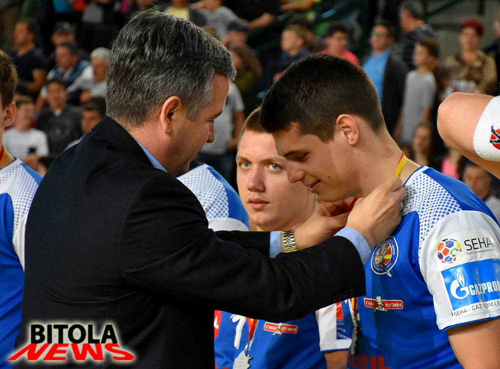 Членот на Управниот одбор на РФМ, Зоран Стерјев од ракометниот клуб Еурофарм Работник, на поразената екипа во финалето им ги додели сребрените медали и им го додели и пехарот.