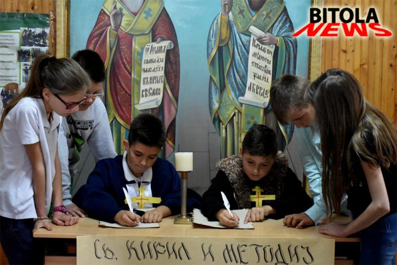 Низ ходниците сретнавме деца кои ги претставува (глумеа) браќата Кирил и Методиј, сесловенските просветители и нивните ученици. Деца со напишано старо кирилско писмо, пера и мастило кои требаше да го доловат тој период, ученици како држат стари предмети облечени традиционално, ученичките кои играа оро беа преубави во традиционална македонска носија.