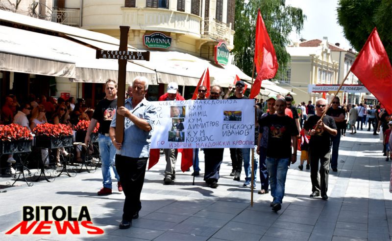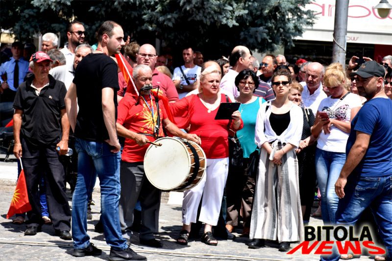 Протестот го предводеше група која носеше погребен крст, а зад крстот свештеникот и други граѓани пееја и погребни песни и стихови од панихиди посветени на лицата кои учествуваа во договорот со Грција.