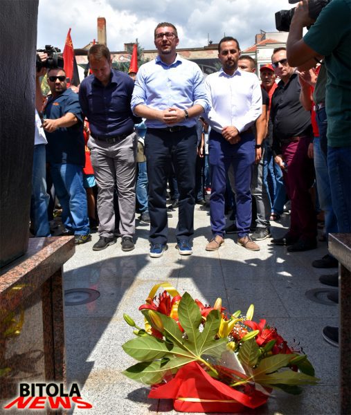 По завршувањето на обраќањето претседателот на ВМРО-ДПМНЕ, Христијан Мицковски со придружба на генералниот секретар Јанушев и претседателот на ОК на ВМРО-ДПМНЕ – Битола, Иванчо Тошевски положи свеќе на споменикот на Револуцијата.