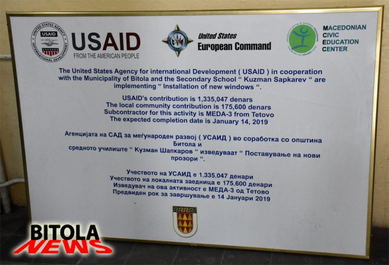 -Средствата за реализација на овој проект, односно за промена на дограмата се обезбедени од Агенцијата на САД за меѓународен развој (УСАИД) во висина од 1.335.047 денари и 175.600 од локалната самоправа. Работите се завршени и сега уште ни престојат мали поправки на деловите каде се заменуваше промената.