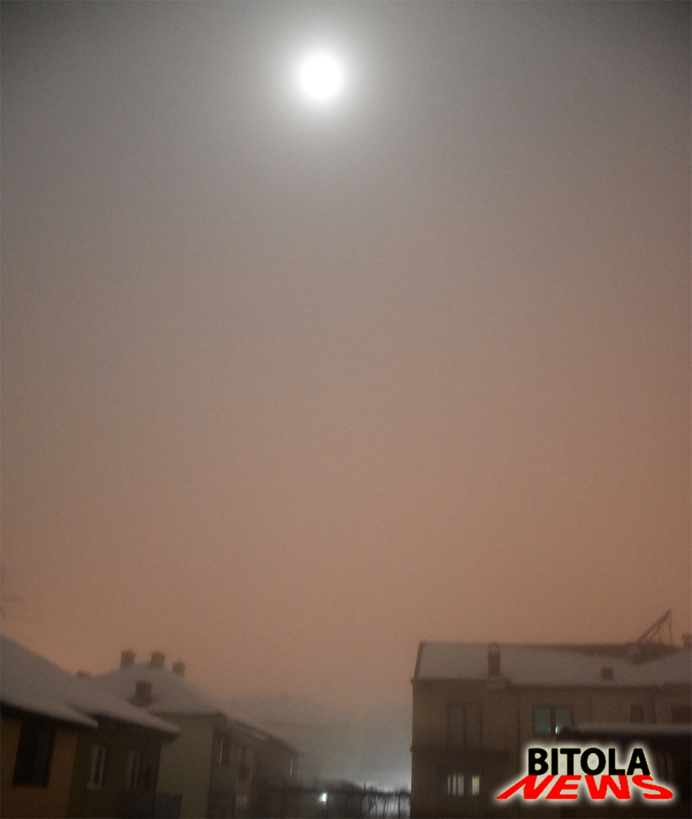 Полната месечина се мачи да се пробие низ битолскиот сињак