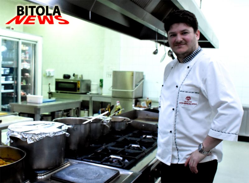 Се разбира дека разговорот и фотографиите со нашиот соговорник ги направивме на неговото работно место во ресторанот на градската кафеана на хотелот “Епинал“ каде целосно е посветен и тоа е негово место на реализирање на неговите кулинарски фантазии кои се подготвени со душа бидејќи како што ми кажа “не ми е важно колку време поминувам тука и колку е работното време, најчесто повеќе од 12 часа дневно кога има некои настани со поголем број гости и делегации, протоколарни случувања, презентации, коктели.