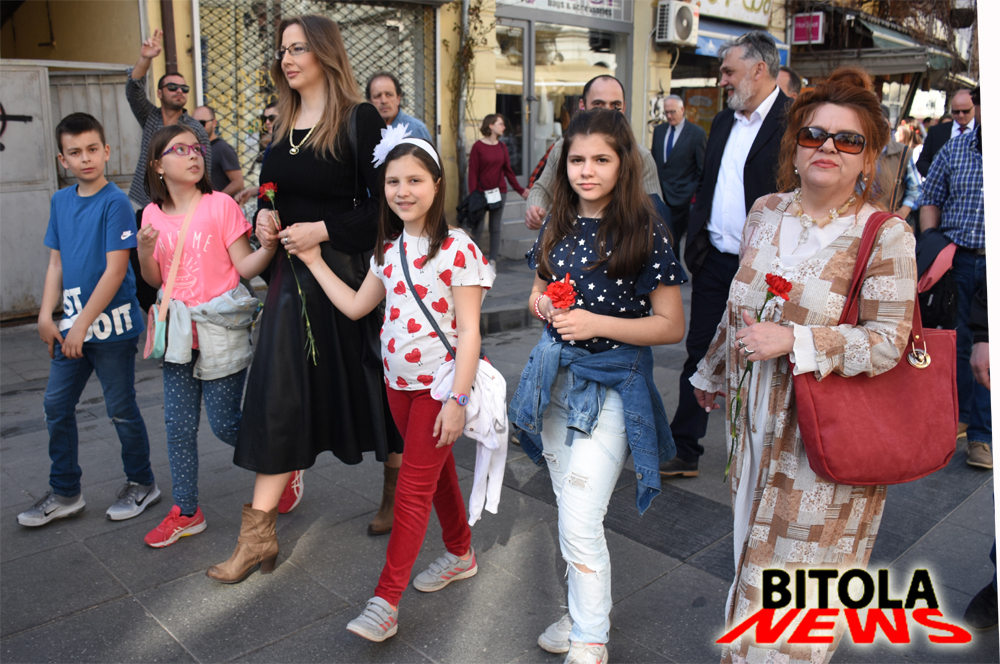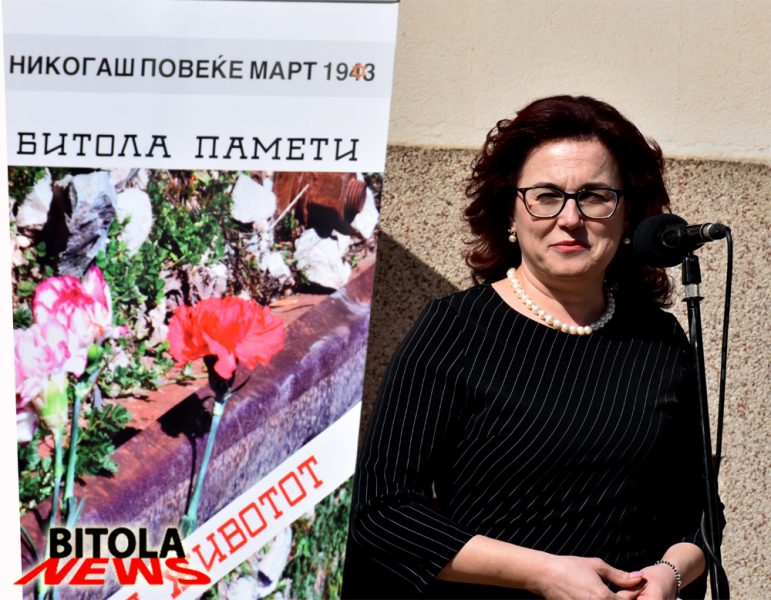 -Ако не беа тие немили настани, ќе имавме комшии, пријатели, возрасни и искусни луѓе, а нивните внуци ќе играа со нашите деца, рече градоначалничката Петровска.Голем број битолчани, гости од Израел, високи гости од државата и странство, амбасадори и конзули, владини министри, претставници на јавниот живот од градот и ученици ја одбележаа годишнина од депортацијата на битолските Евреи.На гостите пред Домот за народно здравје кој го носи името на доктор Абраванел, преживеан Евреин од Битола, се обратија градоначалничката-Наташа Петровска, македонскиот министер задолжен за дијаспора Едмонд Адеми, израелскиот министер за Ерусалим и за животна средина Зеф Елкин и други. Домаќин на неколку дневните манифестации во Битола посветени на 76-годишнината од депортацијата на Евреите од овој град, беше локалната самоуправа, а градоначалничката на Битола, Наташа Петровска, во своето обраќање нагласи:-Се сеќаваме на историскиот настан за да не се повтори, а нашите емоции за тој период обврзуваат да се мотивираме и да направиме нешто повеќе заедно со нашите пријатели од Израел. Сега тука, ако не беа тие немили настани, ќе имавме комшии, пријатели, возрасни и искусни луѓе, а нивните вници ќе играа со нашите деца. Во маршот од еврејското маало, по Широк Сокак, до Железничката станица во Битола учествуваше и македонскиот министер задолжен за дијаспора Едмонд Адеми.Секоја година, и оваа, се потсетуваме на тешките денови и моменти од пред 76 години. Тоа зло никогаш да не се повтори. Македонски и албански семејства во тоа време помагаа колку што можеа да спасат граѓани од еврејската заедница и тие треба да се паметат за секогаш, рече Адеми на обраќањето кај споменикот за Евреите кај Уредот.Во својот говор, израелскиот министер за Ерусалим и за животна средина Зеф Елкин, истакна дека е радосен што битолчани ја чуваат меморијата за Евреите и јавно се заблагодари за грижливо чување на културно историското минато и објекти на Евреите во овој град и рече:Битола долги години беше топол дом на многу Евреи. Но, најладниот и најстрашниот ден во нивниот живот беше на 11 март 1943 година. На тој ден небото беше црно и ја навестуваше темнината… Голема беше неизвесноста на Евреите од Битола и од Македонија. Тешка беше судбината на Евреите во цела Европа, но за жал најтешкото се случи токму тука во Македонија. Горди што се дел од возобновувањето на Еврејските гробишта во Битола, бидејќи тие за нас се значаен споменик.На крајот од маршот, со многу емоции гостите од Израл и битолчани со нив, положија црвени каранфили во знак на сеќавање на битолските евреи, а тоа го направија и сите високи гости.Програмските активности завршуваат вечер со светлосен настан „Патоказ кон помирувањето“ кој ќе се одржи на плоштадот „Магнолија“ и е во спомен на Еврејската заедница.