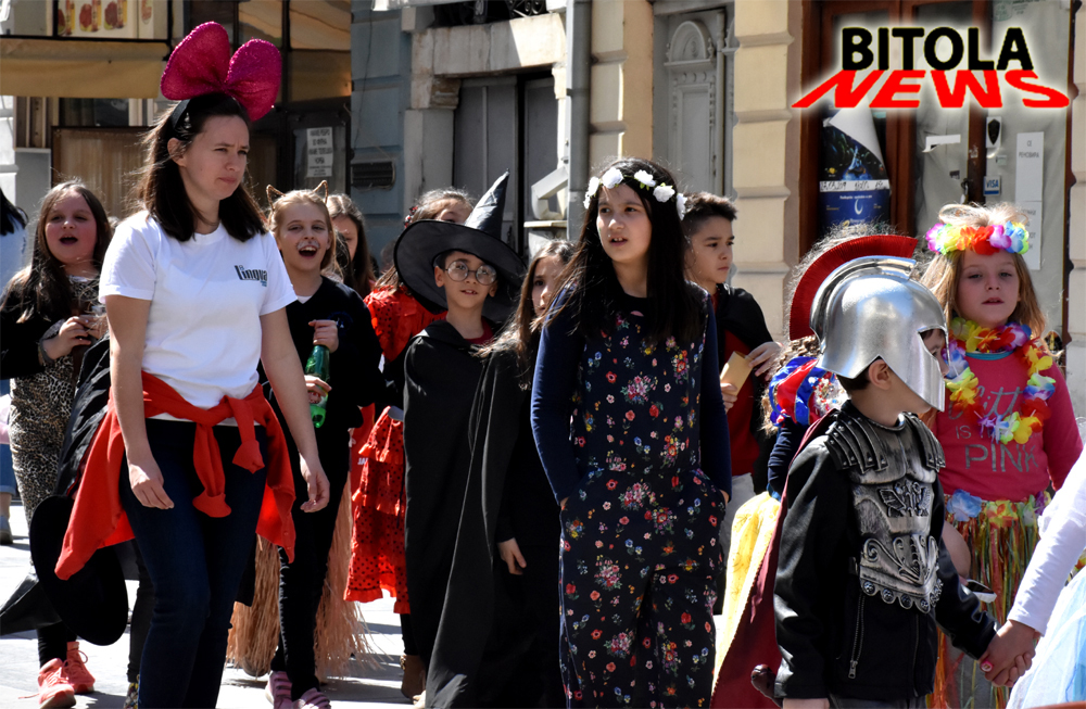 Паркот кај саат кулата беше зборно место, а оттаму по мало задржување, нашите најмали сограѓани, маскирани во разни ликови, дефилираа со своите учителки по Широк Сокак, следени од битолчани кои на пладне беа таму.