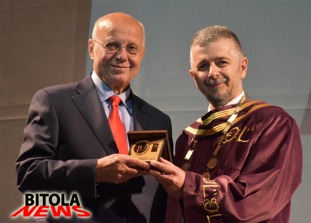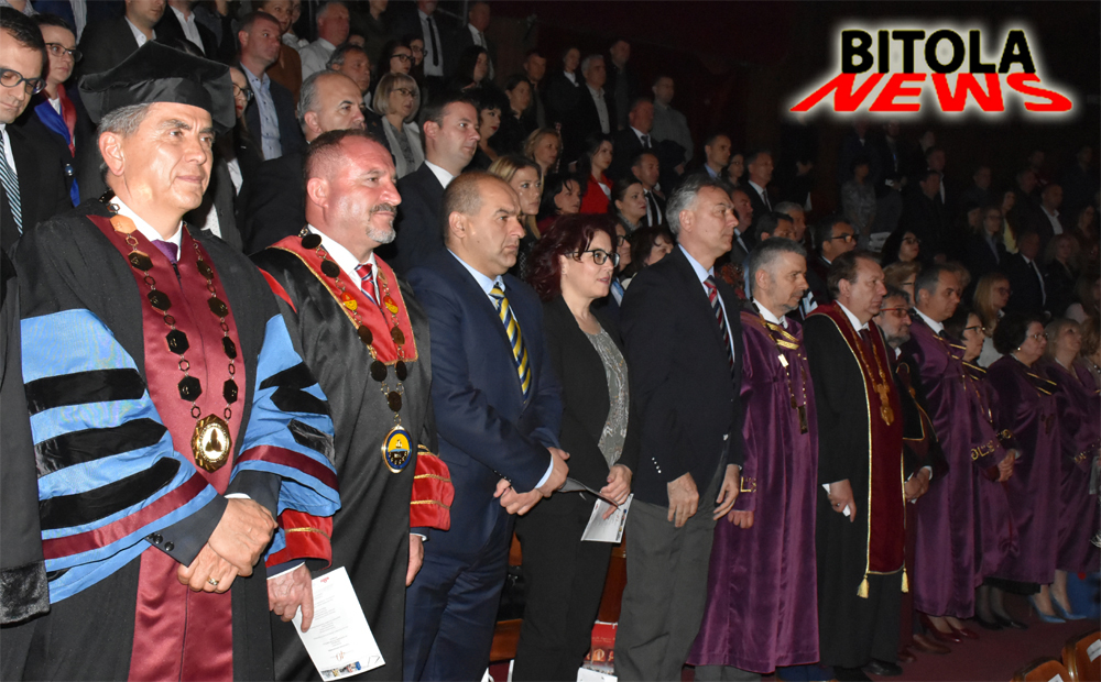 -Пред тоа беше потпишан меморандум за соработка со Универзитетот од Тузла, БиХ, отворена ретроспективна изложба, а на крај настапи и Влатко Стефановски.Нашите 40 години, беше насловот на Свечената Академија која се вечерва се одржа во Народниот театар во Битола, со која беа завршени свеченостите по повод големиот јубилеј на универзитетот “Св. Климент Охридски“, претсавник на македонскиот парламент, на која присутвуваа членовите на Ректоратот, Советот, деканите на УКЛО, градоначалнилката на Битола-Наташа Петровска, амбасадоротите не Франција и Црна Гора, почесните конзули, директорот на РЕК “Битола“-Васко Ковачевски, бизнисмени, академски граѓани, студенти…На свечената академија говореше ректорот на УКЛО проф. д-р Сашо Коруновски, кој се осврна на основањето и почетоците на Универзитетот, развојот и како тој ја гледа иднината.-Денес, 25 април 2019 година, на овој Dies Natalis, нашиот Универзитет навршува 40 години постоење. Огромна е честа да стојам тука пред вас и да ја имам таа привилегија да ви се обратам како 12-ти ректор на Универзитетот „Св. Климент Охридски“ – Битола, на еден толку возвишен чин како што е нашата Свечена Академија. Со чувство на заедничко задоволство да запреме за час, да го споделиме ова малку време и да го посветиме на овој исклучителен настан. А времето тече, годините  незапирливо минуваат. За некои филозофи, за некои физичари времето не се губи, не може да се одземе, ние само зборуваме за него, ние во него ги сместуваме нашите животи. Ние можеби имаме чувство дека го губиме. Тоа не минува ни пребрзо, ни пребавно. Тоа е само време, ништо само по себе, ако тука не се личностите што го освојуваат, го исполнуваат, живеат во него, љубат, работат, учат, подучуваат, студираат…, рече на почетокот Ректорот и продолжи:-Нашите 40 години. Една одлична бројка, сосема доволна за да немаме оправдување дека сме почетници, напротив, со сиот кредибилитет да испратиме порака што ќе биде слушната, разбрана. Да имаш четириесет години тоа сепак инспирира почит: години кога може да се анализира сопствената историја, да се размислува за сегашноста и луцидно да се подготвува иднината со нејзините препреки и предизвици, со сите прашања и одговори, помеѓу неизвесноста и надежта.-Од оној 25 април 1979 година нè делат четири децении. Период во којшто  Универзитетот во Битола – името со коешто беше основана оваа втора највисока академска институција во земјата, сосема заслужено се замени со името на големиот учител патронот св. Климент. Период низ којшто  УКЛО  во континуитет го градеше и надоградуваше својот профил и го калеше својот специфичен модус вивенди во функција на бројните промени во контекстот на делување, но и во сфаќањата, очекувањата.-Институциите социолошки гледано, во извесна мера се како луѓето, се раѓаат, се развиваат, раснат, но не мора и не смеат да згаснат. Не сме и не можеме да бидеме исклучок: низ четирите децении на нашето постоење, низ сите успони и падови, низ сите сцили и харибди, низ кризните и помалку кризни периоди, најзначајно е што сме  го прифатиле и сме свесни за фактот дека сме носители на вредности и на извесна визија за општеството, визија што ја остварувале илјадниците дипломирани како што впрочем ќе ја остваруваат утрешните активни граѓани, денешните наши студенти.-Со израз на огромна благодарност до сите што биле и 
