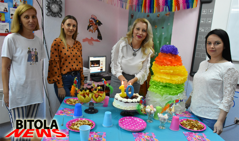 -Новата учебната година и упис за изучување на курсевите ја започнуваме славенички, со одбележувње на роденденот со торта и со нашите пријатели. На овој ден 1 септември пред 10 години започна со работа центарот за странски јазици со курсеви за англиски, германски, француски, италијански, грчки, албански јазик. Низ школата поминаа многу деца и возрасни кои го научија или усовршуваа својот избран странски јазик, а исто така низ овие години поминаа и многу наставници.