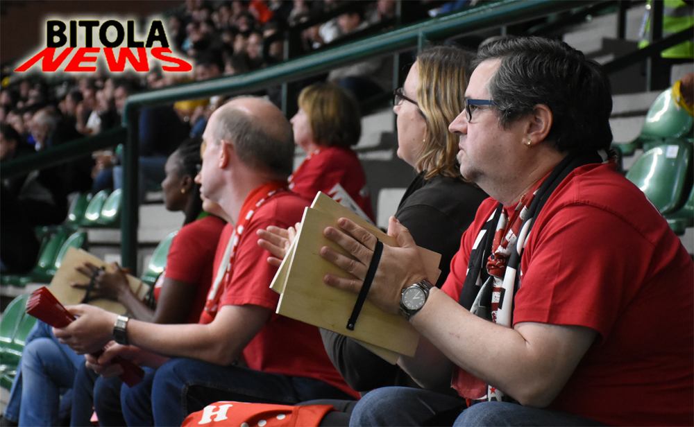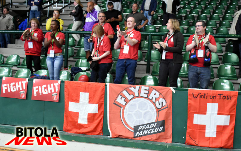 Малата група швајцарски навивачи кои беа на натпреварот во Битола помеѓу Пелистер и Винтертур, од помалку десетина лица, го бодреше својот тим на необичен начин, со навивање со две штичиња.