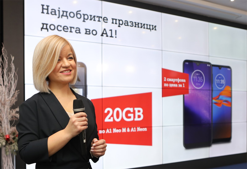 „Брендот A1 го градиме како силен, модерен, отворен и креативен бренд со кој создаваме нови приказни и отвораме нови светови. На корисниците им овозможуваме заедно да ги креираме искуствата според нивните потреби, што ќе придонесе и за поквалитетен начин на живеење во дигиталното време. Со новата промоција ја потврдуваме нашата визија, а тоа е поттикнување на дигиталниот начин на живот, да нудиме одлично корисничко искуство, најсовремени дигитални решенија, стабилен квалитет и поголема вредност за нашите корисници” – изјави Мислав Галер, извршен директор на А1 Македонија.Затоа што празниците се за дарување, овие празници постпејд корисниците можат да добијат 2 смартфони по цена од 1 и тоа Motorola One Macro и Motorola E6 Plus, за само 399 ден./месечно со A1 Neo M и A1 Neon.