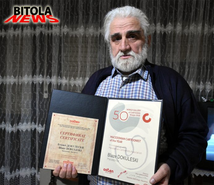 Карикатуристите се витези на доброто, тие можат да ја казнат неправдата, да ги обелоденат гревовите и сами да се казнат, но никогаш не за долго.Повод за нашиот разговор со битолчанецот  Блаже Докуле кој е  единствениот карикатурист од нашата земја со освоени  10 награди на меѓународниот  фестивал  во Сеул, Јужна Кореја. Деновиве ја доби 10. меѓу најголемите карикатуристи од 60 земји од целиот свет. Го посетивме неговиот дом со едноставна причина да поразговараме и фотографираме  дел од неговата богата архива  со карикатури, цртежи, илустрации… Забележав дека за нив се грижи неговата сопруга Драгица, негова голема подршка. Кога го прашав дали знае колку карикатури нацртал едноставно ми одговори, околу 50-60.000 карикатури, цртежи, илустрации, стрипови… Со оваа импозантна  бројка и 50 години успешна кариера со  над 50 освоени награди и учество на над 200 меѓународни и домашни фестивали на карикатурата, сигурно е еден најголемите амбасадори на Македонија. Објавувал во над 10 весници и списанија истовремено, илиустрирал, списанија, учебници, книги.  Карикатуристот Блаже Докуле со овие бројки сигурно е за во книгата на Гинис.И по изглед делува уметнички, со остро, критичко око и ум. Вљубеник во својата работа и како што ни кажа  материјалната страна никогаш не ми значела, само љубовта кон карикатурата, пријателствата со луѓе од овој свет кои ми се драгоцени и до ден денес. Целиот разговор всушност беше околу цртањето, иако Блаже Докуле по професија е правник и работел на многу различни места: имам работено на тезга на пазар, драгстор, во Обвинителство,  РЕК “Битола“, хотел “Молика“… Можеби и од тука инспирацијата за неговите карикатури… затоа и најпрво го запрашавмеЗа карикатурата…
