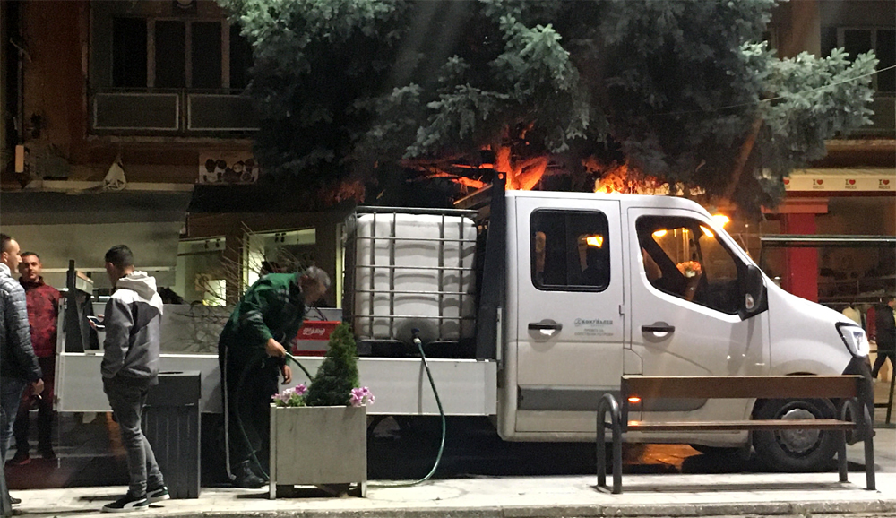 Фото вест: “комуналците“ пред полноќ ги наводнуваа цветните аражмани на Широк Сокак