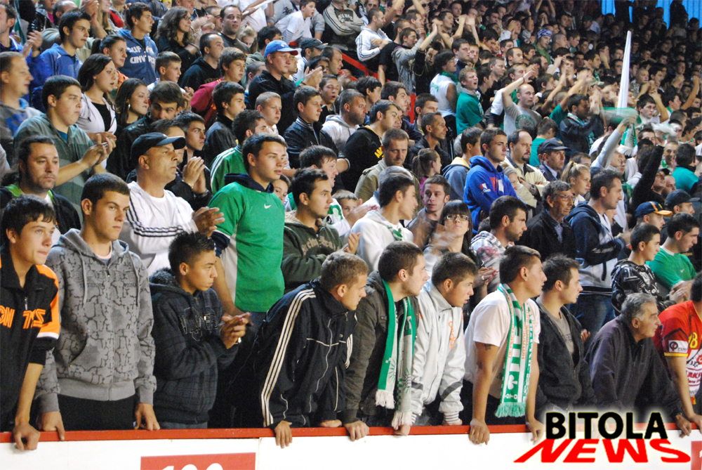 -Веднаш од “на фудбал“ се замина “на ракомет“, а таму вечно дерби Пелистер – Вардар, а во затворениот простор на спортската сала “Младост“ целата трибина беше зелено-бела со балони, а се покажаа и многу транспаренти.