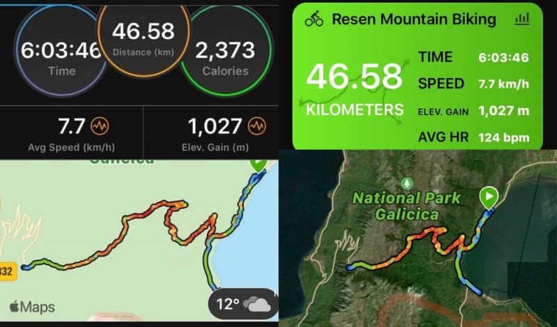 Целата вело-авантура од тргнувањето од Битола, секако со автомобил до Отешево, траеше 6 часа, со возење велосипед, со уживање во видиците кон двете езера Преспанско и Охридско, со одмор, се поминато со разни муабети, далеку од лошите вести, короната, кризата…