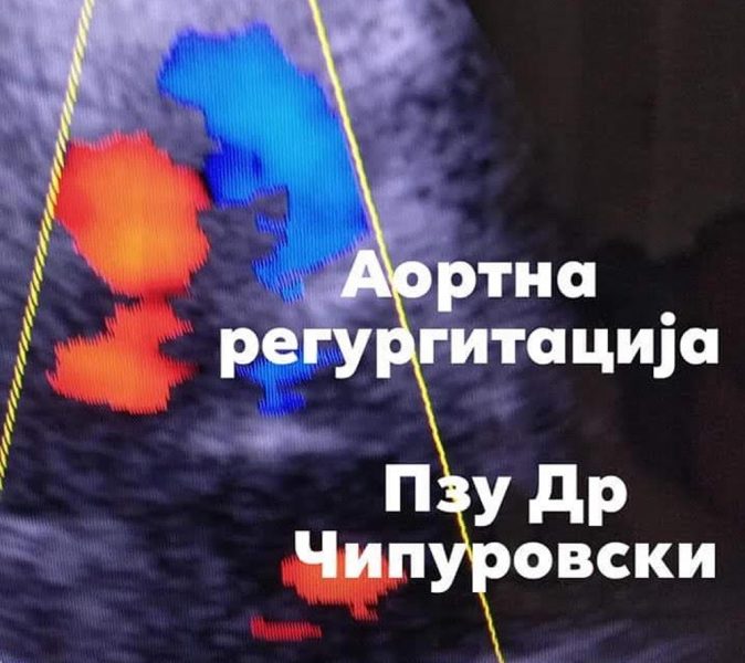-Aoртна регургитација вродена или стекната аномалија на аортните залистоци која се карактеризира со враќање на крв по време на систола на лева комора од аортата во левата комора. Етиолошки причинители можи да бидат вродени аномалии како бикуспидна аортна валвулa, Марфанови синдром, реуматска треска, атеросклеротични промени, аортна дилатација итн.