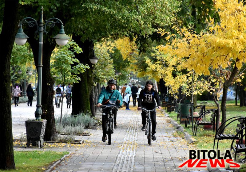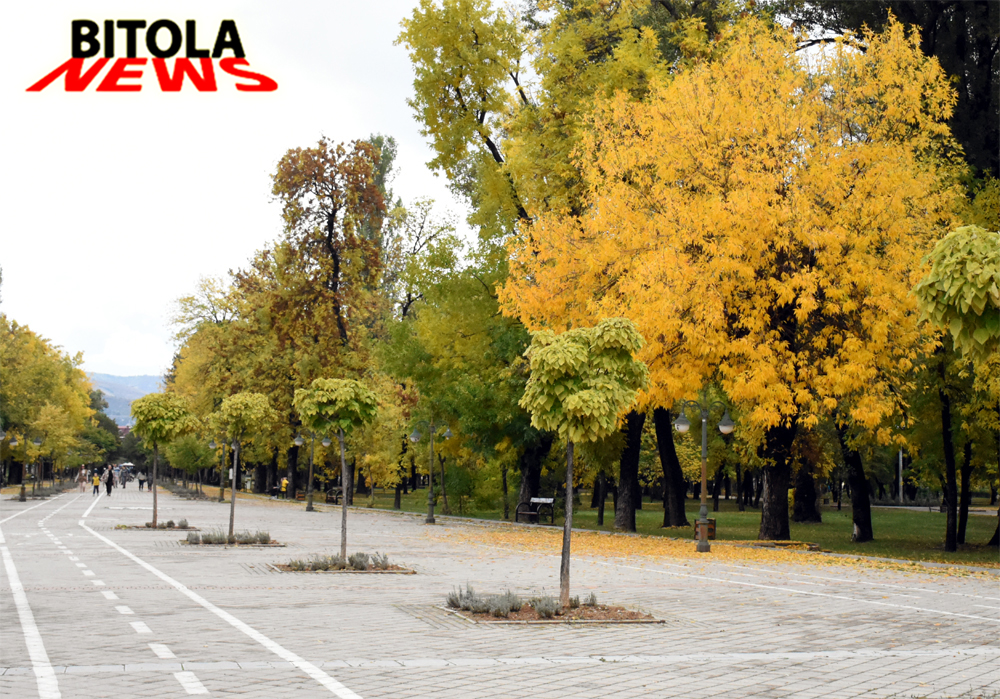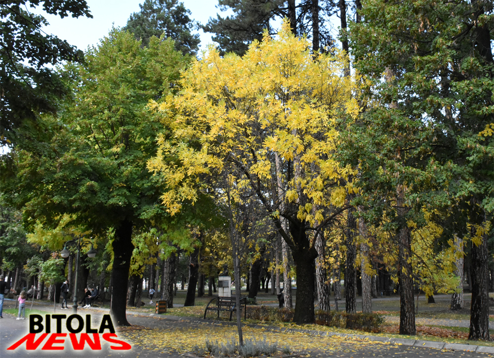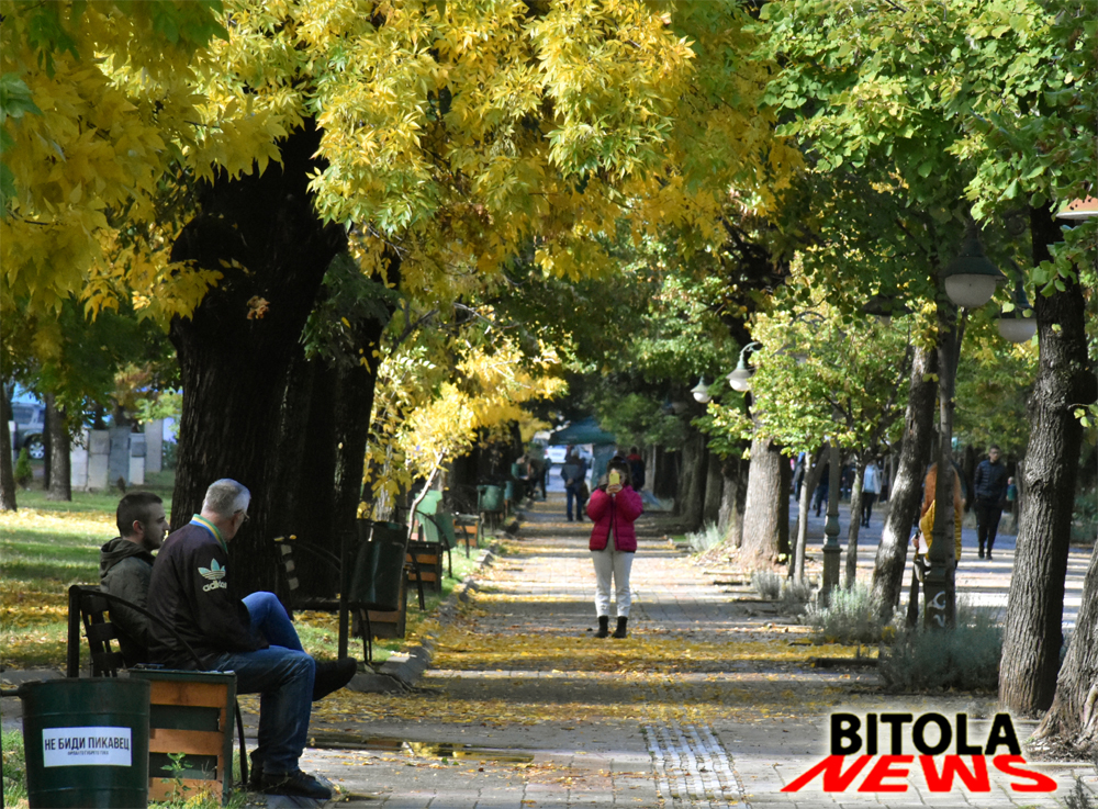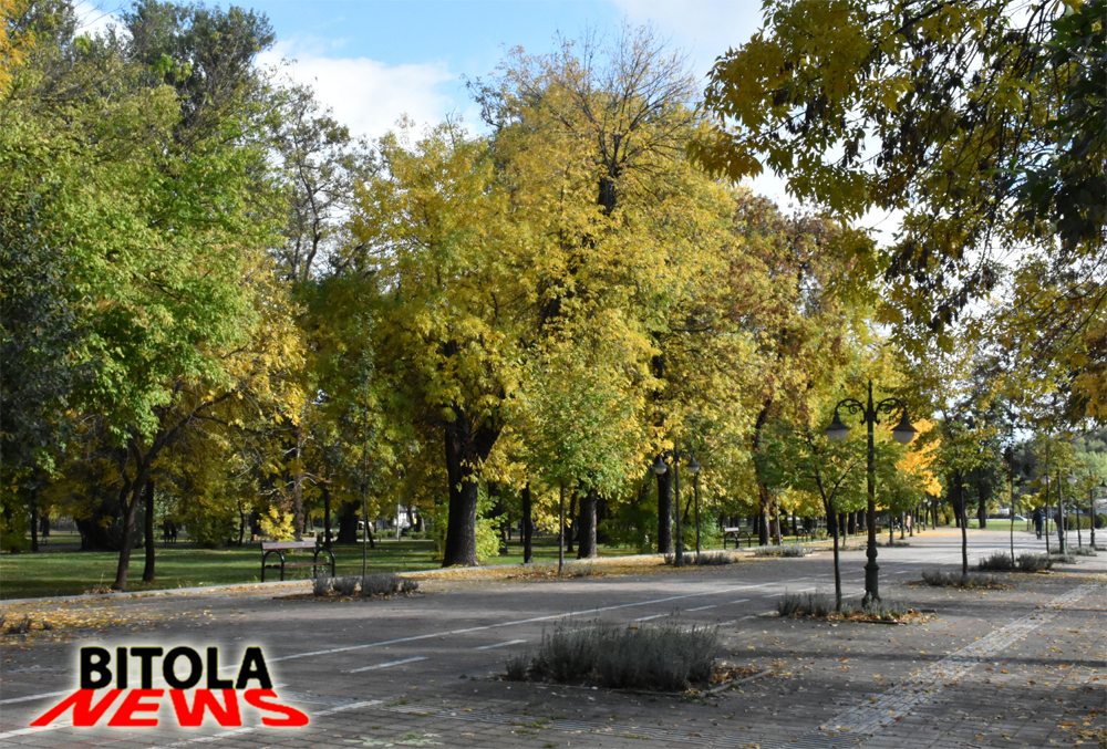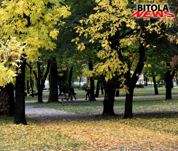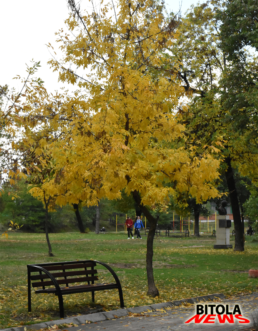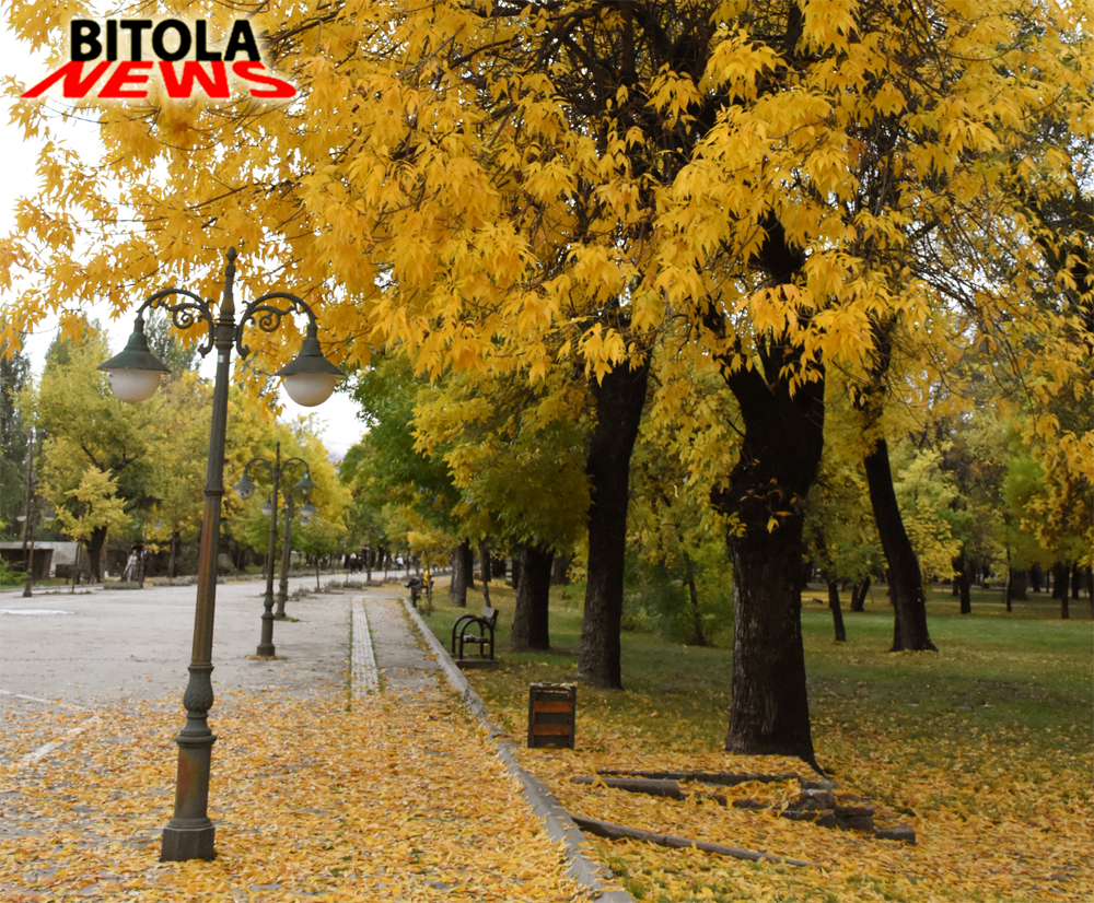 Денешното празнично попладне во Битола, кога престана дождот по неколку дневни врнежи и облачно време,  битолчани го искористија за прошетка низ градскиот парк. На некое време и сонцето се појави после неколку дена тмурно време со обилни врнежи кои ја имаат зафатено Битола.  Оние кои излегоа после дождот можеа да уживаат во убавините на рана есен  со сите нијанси на златна, портокалова, зелена, кафеава боја. Исто така и во глетката кога понекој златно жолт лист  паѓа на земјата правејќи килим.  Вљубените парови потполно се вклопија во есенскиот пејсаж на паркот,  така да паркот потсетуваше на сцени од филм.Велосипедистите и рекреативците го направија својот дневен тренинг. Родителите со своите деца го искористија времето да излезат после двата дождливи денови. Сопствениците на миленици исто така.Но, најповеќе уживаа оние кои фотографираа, бидејќи без оглед каде и да фотографираш,  секој дел од градскиот парк има посебна убавина и бои.Тоа го покажуваат и фотографиите кои ги направивме вдолж паркот до Градскиот стадион и Тумбе Кафе. Всушност тие зборуваат повеќе од сите зборови напишани во текстот.