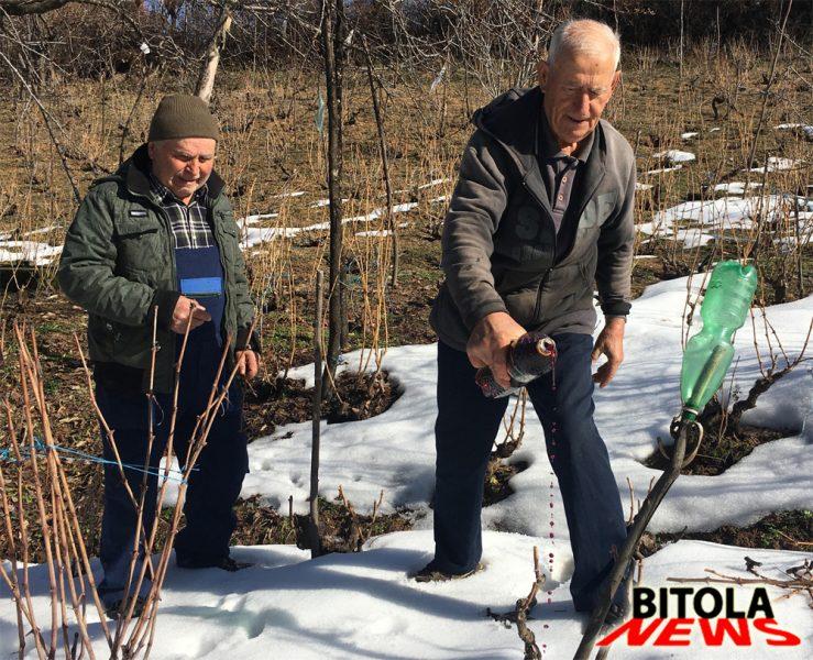 Рано утрово, на денот на Светецот Свети Трифун, во моментот кога сончевите зраци се пробија низ шумата над населбата Стрчин, каде се викендичките и лозјата, архитектот Зоран Алтипармаковски заедно со Илче, Драган, Крсте, Јован, Коста… го одредија правецот кон сонцето каде ќе “гледа“ олтарот на малата црква “Св. Трифун“ и го започнаа колчењето на темелите на истата. Црквата ќе биде посветена на Свети Трифун, а ќе биде изградена кај Стрчинското Виногорје, како битолчани го викаа ова место, каде можеби еден век се наоѓаат лозјата.Архитектот Зоран Алтимарковски кој го изработи планот за малата црвка, за денешните активности, покажувајќи го планот за изградба на црквата, ни рече:-По изработката на планот за црквата, денес ги започнавме и официјално активностите околу изградбата на црквата. Црквата ќе се гради по иницијатива на мештаните, а денес на денот на Светецот Свети Трифун, на кому му е посветена, ги исколчуваме темелите. Црквата ќе биде мала, со димензии 2 метри ширина и 3 метри должина и ќе биде висока 3 метри. Црквата ќе биде “свртена“ кон местото каде на денешен ден изгреа сонцето, во чест на Свети Трифун, а ова е прва црква за овој светец во Битола.Иницијативата беше на групата која се нарекуваа “Весели лозари“, кои секоја година заедно ги зарежуваат стрчинските лозја, и за кои имавме пишувано и порано, а сега имаат и Црковен одбор со кој “раководи“ Јован Јовановски, кој ќе се грижи за изградба на црквата.-Има четири години откако започнавме со изградбата на оваа црква. Прва активност беше поставување на кандилница, која ја покривме, а потоа тука направивме “конаци“, да речам така. Сега со Господ напред ќе продолжиме и се надевам дека за брзо ќе ја “покриеме“. Ова ќе биде едиствена црква на Свети Трифун не само во Битола туки и во битолска околија, вели Јован, кој битолчани го знаат и како шофетот од брза помош.Домаќини на денешните активности беа сите, како ни рекоа, но сепак Илчо Белџигеровски, беше најзафатен со сите пречекот на гостите и подготовката на храната.-Сите сме домаќини денес. Кога ова не беше почнато да се гради, како и Вие што бевте сведоци се беревме на овој ден кај мене во куќата, а сега сме тука сите заедно во објекто кој сите го изградивеме и ќе продолжиме да го градиме. Сите подаривме храна и вино, а сите намерници кои денес ќе дојтат тука ќе бидат послужени со храна и вино во чест ја Светецот, за кој и ја започнуваме да ја градиме оваа црква, вели Илчо.Иако денечниот ден беше посветен прво за започнување на изградбата на црквата, не беше забораван и православниот адет, зарежување на лозјата. Сите кои беа тука на момент отидоа до своите лозја да го направат адетот, а највозрасниот Ристо Кочов, пензионер, како вели од “Транскоп“, кој има лозје наспроти местото каде ќе се гради црквата, ги покани сите, да го направат зарежувањето.-Јас сум тука од 1965 година и тука има лозје цело време и тука сум зиме и лете, и по сонце и по снег и по дожд. Адетот за зарежување на лозјето нема година да не го направам. Сум го зарежувал лозјето по секакво време. Сега веќе од утре започнувам да го работам лозјето. Прво ќе ги вадам конците, а потоа продолжувам со режење. Оние прачки кои се за фрлање ги фрлам, а оние кои се за род ги оставам, покасно ќе ги режам, како што го правам ова веќе близу 60 години, вели Ристо.-Моштите на Свети Трифун пред десети