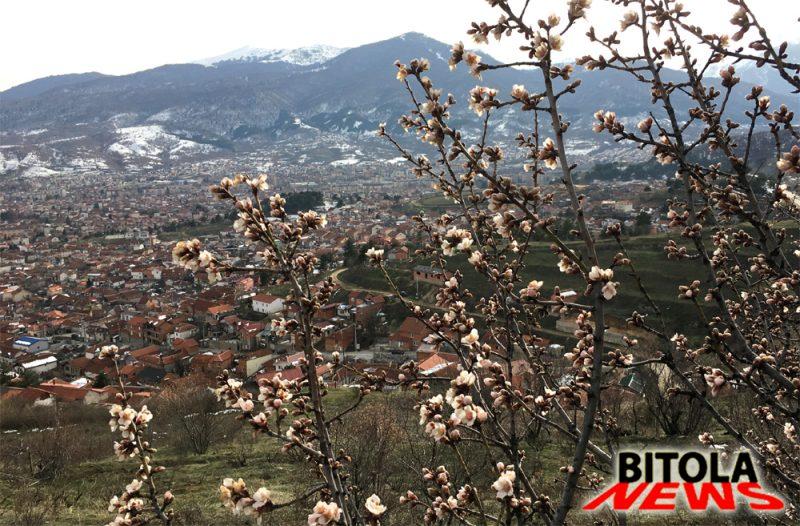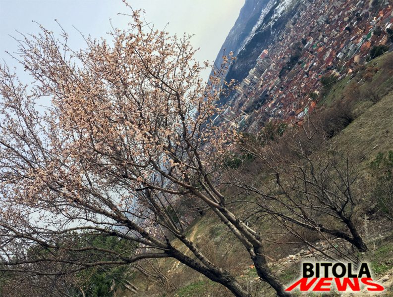 Првата половина на годинашиот март ќе ја паметиме по потпросечните температури за овој месец, но и по голем број на денови во кои врнеше снег, но само по ден-два сонце се враќаме на убавите мартовски денови, но со “сонце со заби“, попладнево и до силен ветер.Но, и во вакви временски услови, убавата розева боја на расцутените бадени, ја има на ридовите над “Бадем Балари“ и над Смилевски Баир,  по што и овој дел на Битола го добил името, и над “Смилевски Баир“, како и над Кркардаш и “Св. Архангел Михаил“ е првиот показател дека за некој ден и календарски ќе бидеме во пролет.Иако сликата над Битола надополнета со снег кој го има под дрвјата и во осојните места, е неповторлива за овој период од годината, за средината на март.Малку потоплото време кое ја затопли Битола после последните снежни врнежи кои ги имавме оваа зима, а ќе ги имаме според прогнозите и деновиве, со повисоки температури на ридот над спроти сонце, придонесе да расцветаат бадемите.Но, за жал попладнево, кога и се направени фотографиите, само немолкумуна битолчани, кои можат да се избројат на прсти од една рака, уживаа во прекрасниот поглед на Битола, и во убавите цветни аражмани од розевите цветови и зимзелените дрва.Тие кои беа таму, само констаираа, а Никола рече:-Бадемите расцутеа после студот и снегот, на некој ден пред Кркардаш, а утре-задутре ќе бидат најубави. Добро е што снегот е во почетокот на месецот, кога нема многу цут по дрвјата, не само кај бадемите туку и кај останатите, а ако нема поголем студ во април, да ги “пресече“ цветовите, ќе јадема овошје, ако не ништо од тоа.Ние сме малкумина кои редовно шетаме горе над Кркардаш, а ридот кој цел ден со сонце е најубавиот дел од градот за рекреација. Уште се луѓето “уплашени“ од студот, но за некој ден ќе се зголеми бројот и ќе пешачиме повеќе, да уживаме на сонцето а тоа е лек, тоа е витамин “де“, а Ице додаде:-Е, да му беше оваа убавина во Швајцарија или Словенија, тука ќе вриеше од луѓе, а не вака,  некогаш да ти е страв да поминеш“ посебно пред зајдисонце, како денес. Гледате дека сме пет мина на цел рид од Бадем Балари до Раштани, а не пропушти да прокоментира и за машините и луѓето кои чистеа:-Ова што чистат долу е супер, но не знам дали ќе трае десет дена, да се видиме и да провериме заедно.С.Ристевски