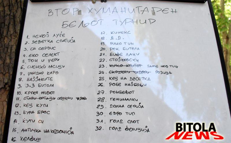 Денес се одржа 2. по ред хуманитарен “Бељот турнир“ во Битола, во организација на Ротаракт клубот Битола од Битола, кој се одигра на 16 маси, на истата ланска локација, на пешачката зона покрај река Драгор, од “Рудо Јагне“ до првото дрвено мовче.