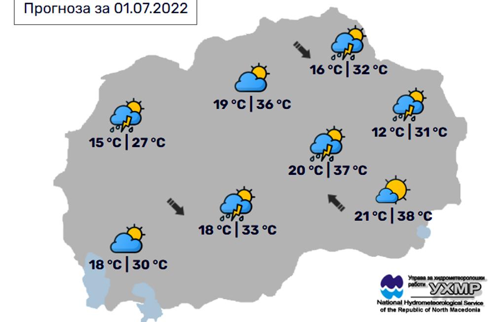 Утре, сабота, 2 јули, во Битола, времето ќе биде претпладне сончево и многу топло со мала до умерена облачност. Попладне можност за нестабилност. Температурата во Битола до 33 степени. УВ=8