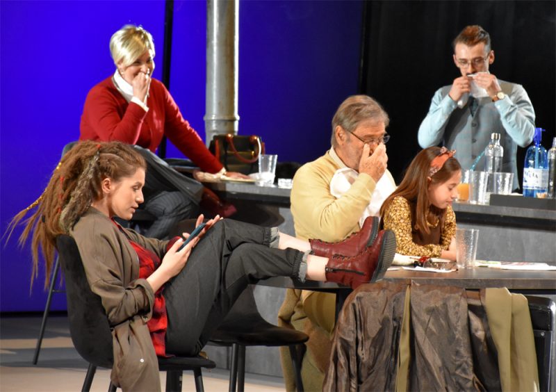 Во претставата играа Никола Ристановски, Звездана Ангеловска, Дарја Ризова, Јана Вељановска, Ана Арсовска, Благој Веселинов, Петре Арсовски, Сашка Димитровска, Александар Михајловски, Нино Леви и Мартин Ѓоргоски.