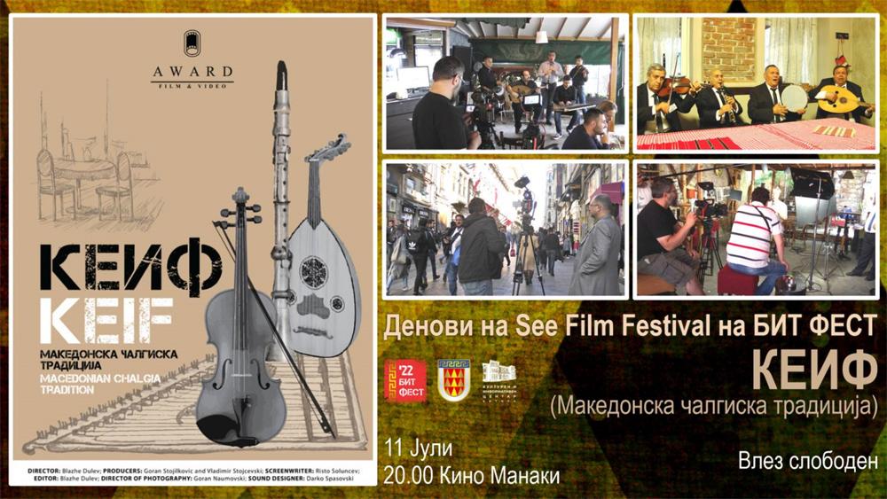 Вечерва, ќе биде прикажан филмот „КЕИФ“ (Македонска чалгиска традиција) во времетраење од 94 миути, во режија на Блаже Дулев, а по сценарио на Ристо Солунчев.