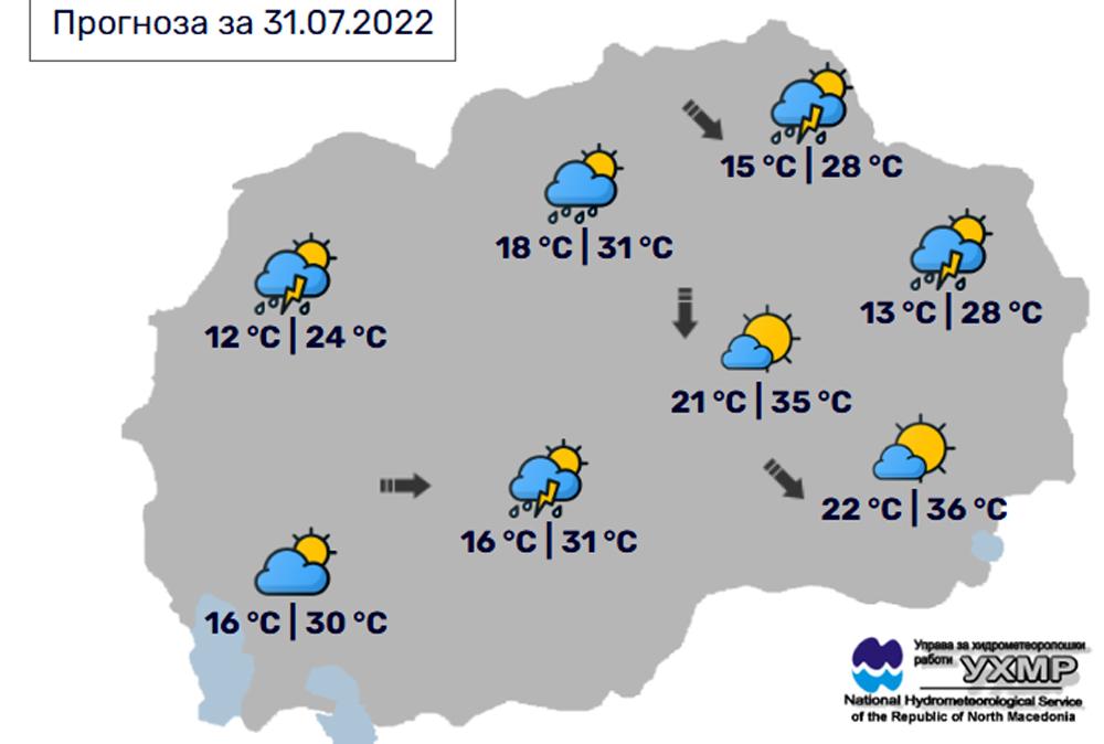 Денес, недела, 31 јули, во Битола, според прогнозите на метеоролозите на Управата за хидрометеоролошки работи, времето ќе биде сончево со мала до умерена облачност. Попладне можност за нестабилност. Температурата во Битола до 31 степен. УВ=8.