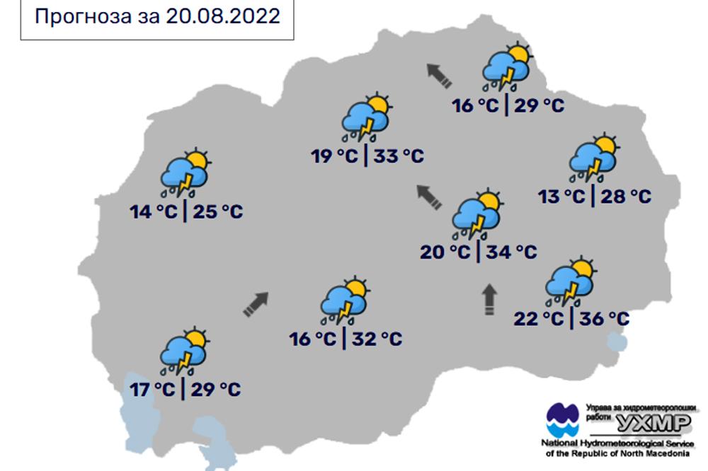 Денес, сабота, 20 август, во Битола времето ќе биде прoменливо облачно и нестабилно, со повремен пороен дожд и грмежи. Температурата во Битола до 32 степени.