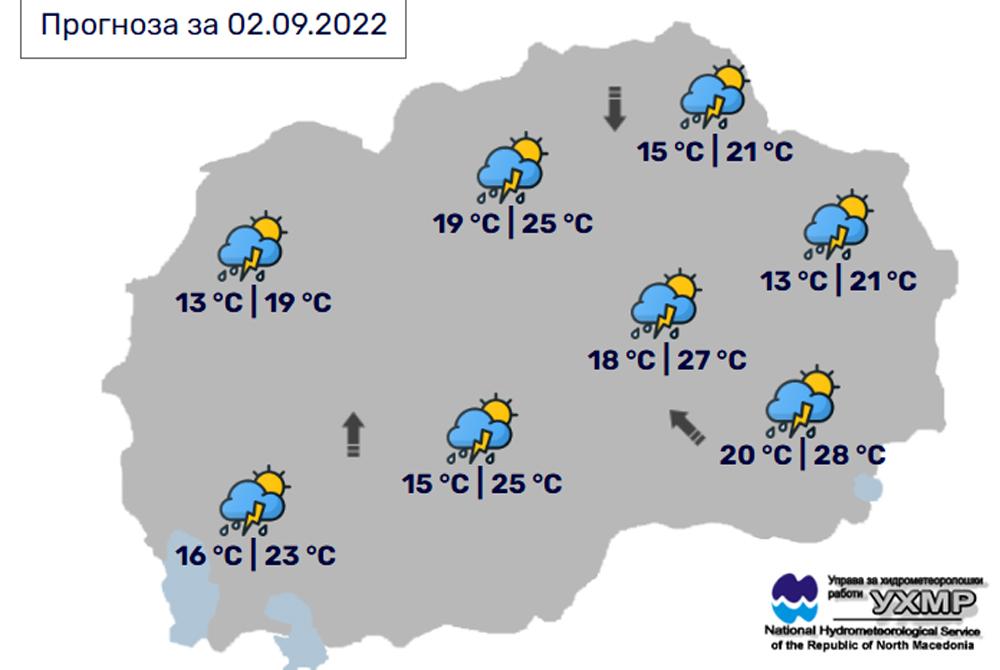 Денес, петок, 2 сепрември, во Битола, спорред прогнозите на метеоролозите на Управата за хидрометеоролошки работи, времето ќе биде променливо облачно и нестабилно, со услови и за невремет. Максималната температура во Битола до 25 степени.