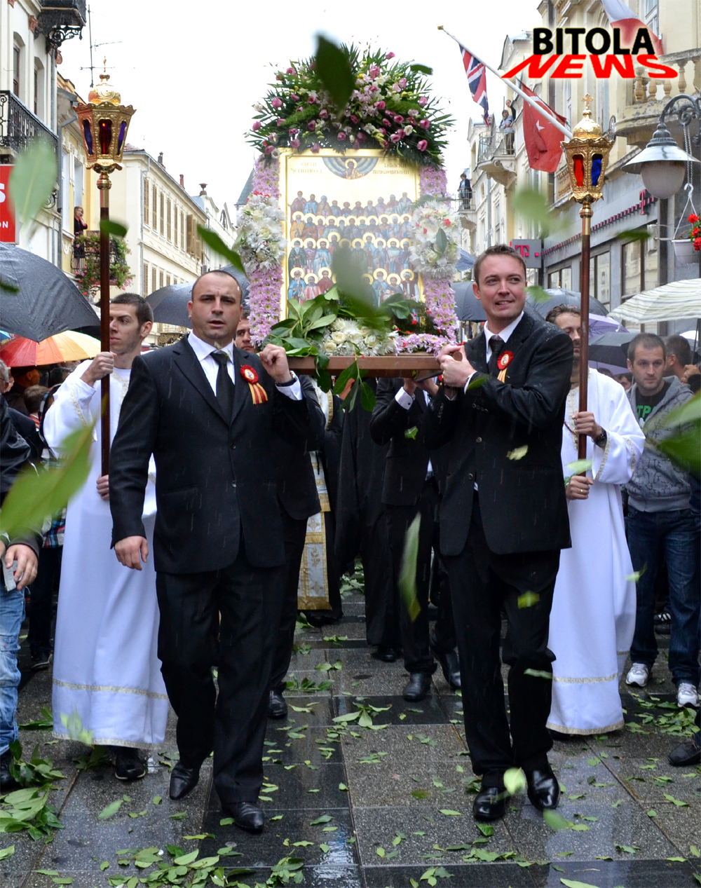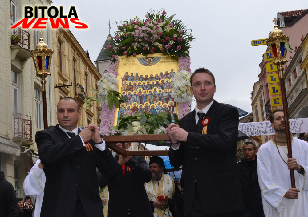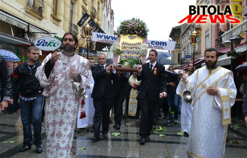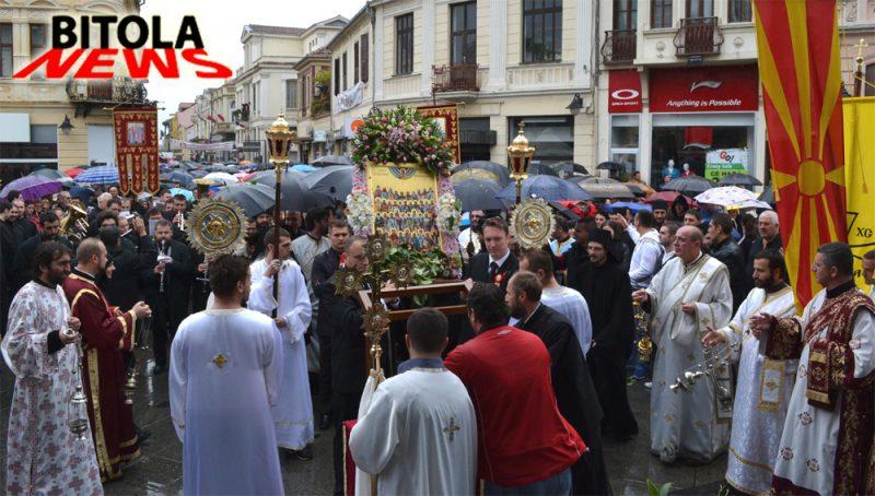 Светата икона на литијата низ улиците на Битола ја носеа Кире Божиновски, Горан Милевски, Ламбе Алабаковски и Александар Најдовски, а верниците нивниот пат го опсипуваа со цвеќиња.