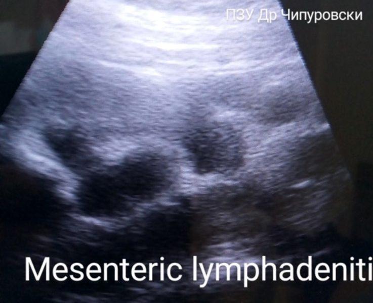 Зголемените лимфни јазли можи да се инфламаторни елонгирани со дијаметар АП над 7 мм и сочуван хиперехогени хилум најчесто во склоп на улцерохеморагичен колитис, кронова болест и гастроенетроколитиси и малигно-метастатски трансформирани со хипо анехогеноа ехотекстура овална форма нејасни граници немање на централен хилум. Комплементарни методи се контрасната КТ, МРИ, колоноскопијата со биопсија како и лабораториските тестови за окултно крварење, CA 19-9, CEA при суспектност во дијагностицирање колоректален карцином.