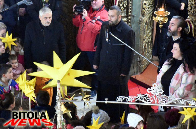 -Ви благодариме на сите кои денес го исполнивте храмот и ја испеавме Божикната песна, и сакам да ви кажам дека вие, дечињата, најдобро го најавивте Христовото раѓање, со носење на ѕвездите, кои сами ги изработивте, кои ја симболизираат Божикната ноќ, која е пред нас, кога е роден нашиот Бог. За разлика од некои кои го комерцијализаа овој празник, Божик, вие со чиста душа пристапивте во храмот и го најавивте Христовото раѓање.
