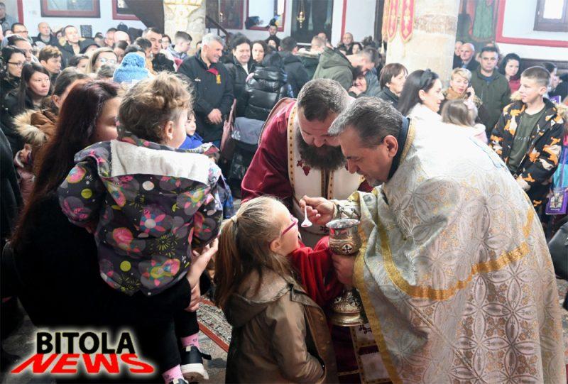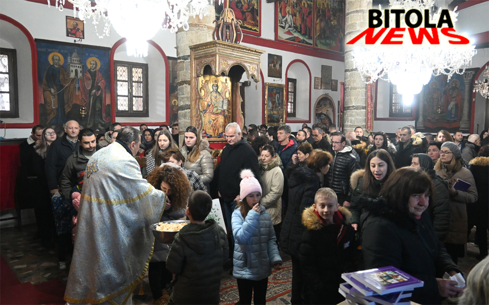 Првиот ден по Христовото раѓање, Божик, петок, 7 јануар, 2022 година, во црквата “Света Недела“ во Битола, свештениците Отец Пенчо и ѓаконот Александар, одржаа света Божествена литургија.Посебна радост за свештениците и за верниците беше тоа што на Светата литургија присуствуваа голем број на верници, посебно млада популација,  кои кои претежно живеат во овој дел на градот, а и присутни беа и други кои беа дојдени во црквата од другите делови на Битола.-Христос се родил во пештера, во Витлеем! Таа пештера не е убав трем, а не е ниту амбар или житница, такво нешто може да биде само сон на фантазерите и играчка за малите дечиња, но не и пештера во која се родил Христос. Вистинската пештера, била дом на животните, древна бедна пештера во сиромашните земји, и не била градба со столбови и капители, налик на раскошен амбар наменет за децата на бадниковата вечер.Ѓаконот Александар го прочита пред присутните и Посланието на Владиката Петар, каде беа посочени актуелните проблеми на денешницата, а тука беше речено за работите кои не одвраќаат од Верата, а тоа се прави на разни начини.-Се градат, цркви, манастири, но многу повеќе бројни се отворањата на кладилници, казина, дискотеки. Сајтовите каде се прокламира верата, љубовта се помалку се читаат, а за сметка а тоа се отвораат и читаат содржини каде доминираат соблазните содржини, а тоа посебно го прават младите. За жал оние млади кои го негуваат традиционалните вредности, верата, љуботна кон семејството, оние кои млади кои имаа почит кон постарите, од страна на неивните врсници се третираат како заостанати, стои во Посланието од Владиката Петар, прочитано пред верниците во црквата “Св. Недела“.Отец Пенчо ја кажа и молитвата за Светата Причест, а потоа со причесна ги послужија верниците кои ги одржаа Божиките пости. На крајот од службата присутните беа послужени и со нафора, за нивно здравје и на нивните блиски.Сите млади верници кои се причестија со Светата причест и го целуваа Светиот крст добија на подарок издание Библија за млади читатели. -Денес е голем ден, го славиме Христовото раѓање. Јас сум тука редовно во црквата, па и сега кога е голем празник, ја слушам литургијата, а се и во наредните денови ќе доаѓам. Нека дојдат сите, нека не седат дома, нека дојдат во црките, да слушаат литургии и да се помолат за сите, ни рече чичко Васко.Богослужби во црквата “Света Недела“ ќе се изведуваат и наредните денови, а свештениците ги поканија верниците да присуствуваат на сите, за заедно да го слават Христовото раѓање.На верниците, свештениците им порачаа дека на овие денови се слави Христовото раѓање, а не смрта и воскреснувањето, па затоа не треба да се посетуваат гробовите на мртвите. Но, најголем број на битолчани денес се упатија кон гробовите на своите најблиски.Верниците кои за куќна слава го имаат Божик по завршувањето на Службата “кренаа лепче“ за здравје.