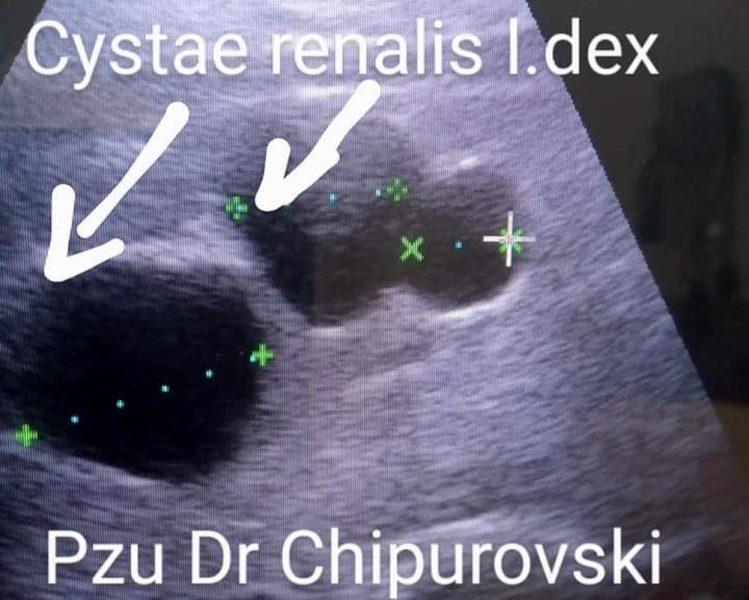 Појавата на хематурија, болка во слабините хипертензија треба да не насочи кон правење на ехо на бубрези при што дијагностичките критериуми за ADPKD со ехо на бубрези се утврдени 1994година тоа се: постоење на две цисти во еден бубрег или по една циста во двата бубрега кај лица со позитивна фамилијарна анамнеза кои се помлади од 30години, или постоење на 2 цисти во двата бубрега кај лица помеѓу 30-60 годишна возраст со позитивна фамилијарна анамнеза за полицистични болест на бубрезите кај еден од родителите, постојат три групи според број на цисти во бубрезите прва до 10 цисти, втора од 10-20 цисти во двата бубрега и трета група над 20 цисти. Морфолошки со лесна редукција на кортекс и уредна ехогеност,со хиперехогеност и назначена кортикална истенчување се до губење на кортикомедуларната граница.