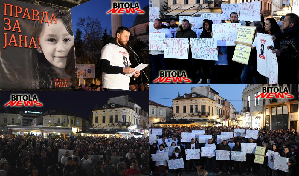 Вечерва во Битола, на плоштадот “Магнолија“ се одржа граѓански протест, за кој битолчани велат дека бил досега намасовен граѓански протест организаран во градот, на кој беше побарана “Правда за Јана“ – одговори од надлежните за смртта на шест-годишното девојче.