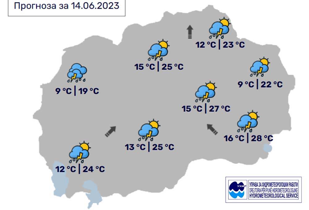 Денес, среда, 14 јуни, во Битола според прогнозите на метеоролозите на Управата за хидрометеоролошки работи, времето ќе биде променливо облачно, од пладневните часови можност за нестабилност, со пороен дожд и грмежи. Температурата во Битола до 25 степени.