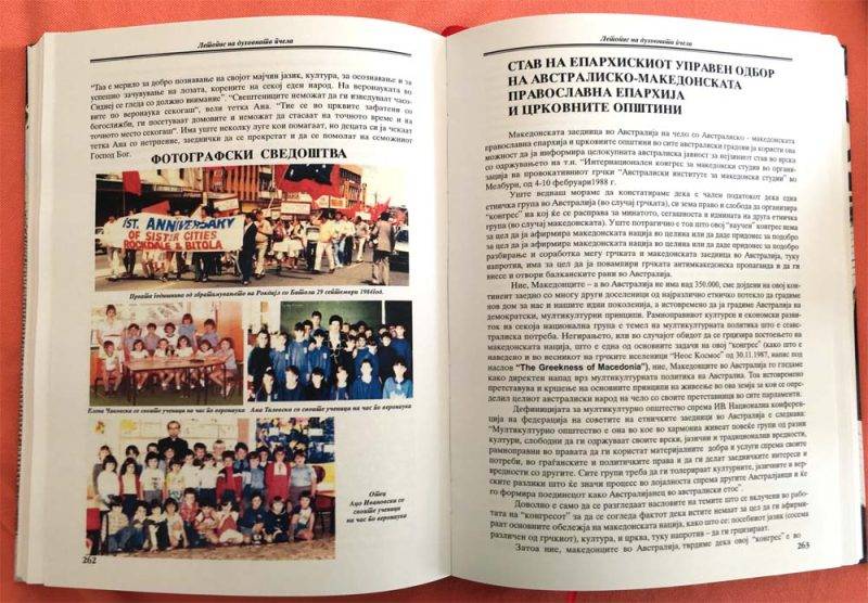За тоа се потрошени десетици милиони австралиски долари, и продадени se бројни објекти, а нашите иселеници, како што наведува авторот, тој “луксуз” на владиката ги чинел милиони долари. Уште повеќе, дојде до раскол во Австралиско-новозеландската епархија и поделбата на две епархии, со двајца владици. За иселениците, како и за авторот, тоа е “мрачниот период на духовната пчела”. Даден е преглед на децениските спротивставувања, низ митинзи протести и делувања во австралискиот и локалните парламенти против пропагандите на соседните држави Македонија и Македонсците.