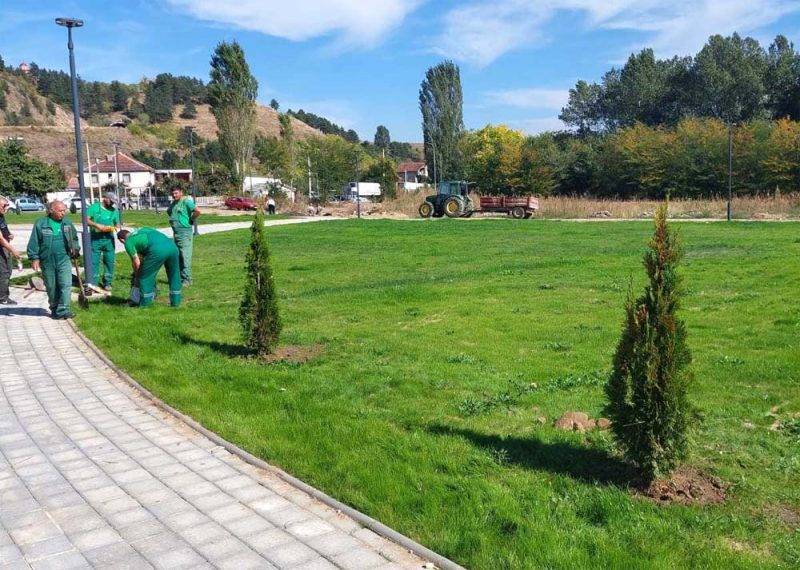 Екипи работеа на новиот парк кај “Довлеџик“ каде засадуваа зимзелени садници, за разубавување на ова ново уредено место.