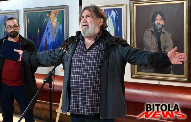 -Маја и Љупка се “виновниците“ за оваа вечерашна изложба, бидејќи точно е дека се откажав, тие ми ветија дека ќе печатиме монографија, а јас не можев да ги одвијам. Благодарнст и за Лилјана Христова која го напиша текстот, и за сите кои се вклучија, а најмногу на мојата ќерка Синоличка која сето ова го “спакува“ за вака убаво да изгледа. Морам да му се заблагодарам и на мојот некогашен директор Стојко Мојанчевски, во РЕК “Битола“ која ми овозможи да напредувам, преку разни форми, и да добивам награди. Секако сакам да му се заблагодарам и на моите пријатели со кои пиеме кафе на Широк Сокак, секој ден и додаде: