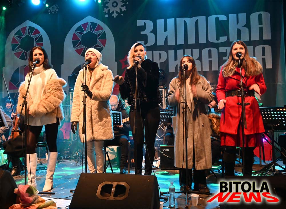 Денешниот, саботен ден воедно и 8. ден од “Зимската приказна“ која ја организира Општина Битола за дочекот на Новата 2024 година, како и измината цела седмица, донесе програма на повеќе локации низ Битола, а настапија повеќе изведувачи и групи.Во вечерна програма, на платото пред Офицерски дом битолчани имаа прилика да слушаа  “Jingle bell symphony“ – Sarah Mace & the Christmas Girls и Камерен Оркестар на Битола.