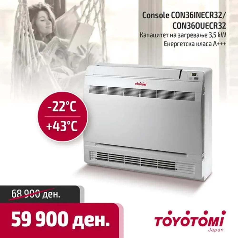 TOYOTOMI CONSOLE CON36INECR32/CON36OUECR32 е модел инвертер топлинска пумпа во конзолна/парапетна изведба.