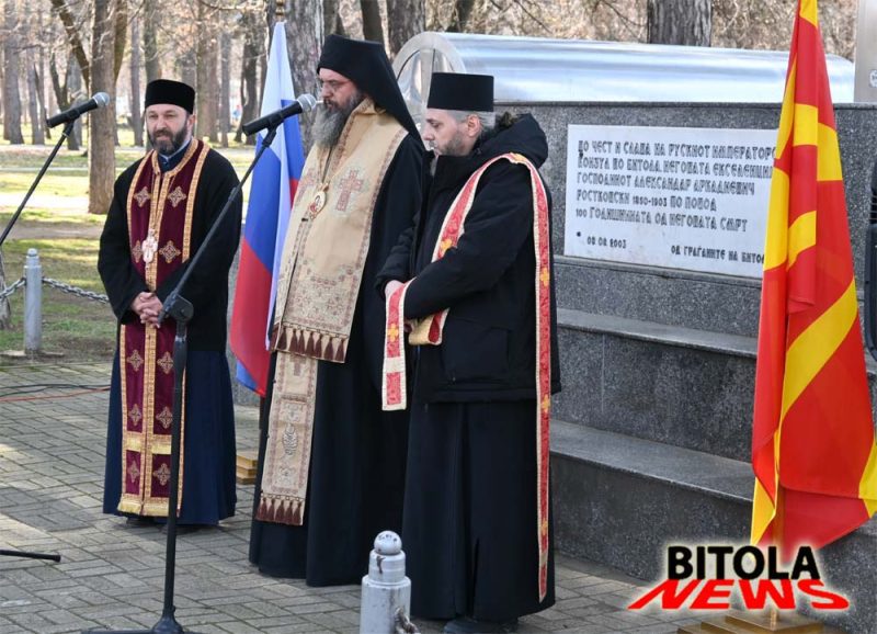 На Рускиот крст кои се поклонија и дугите присутни на споменот на Александар Аркадиевич Ростковски, руски конзул во Битола, кој во 1903 година беше убиен токму на ова место.