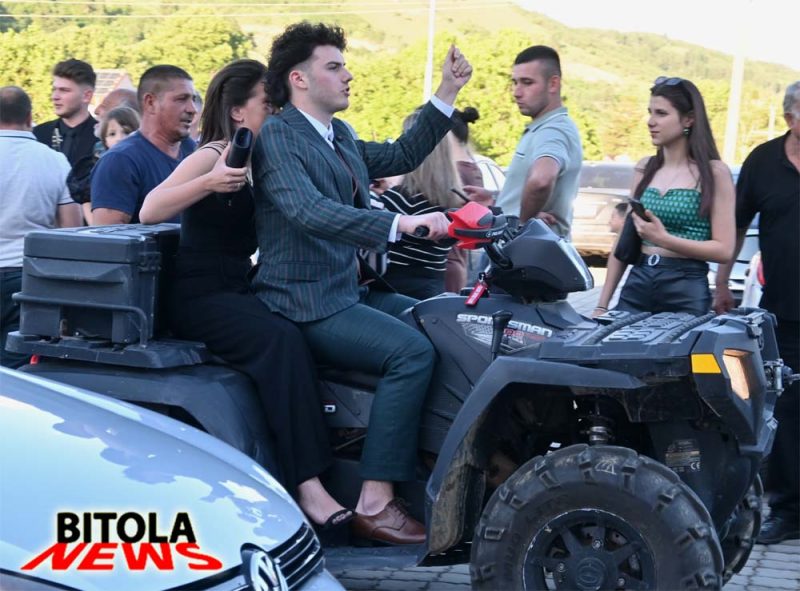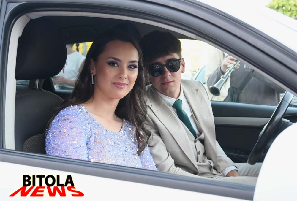 Професорот по историја, Филип Јаковлевски, им направи чест на неговите ученици Мартин Кочишки и неговата партнерка Марија Бошеска и заедно со него пристигнаа на матурската прослава.