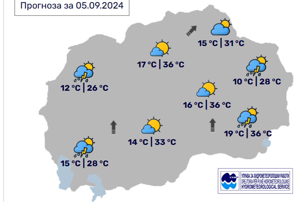 Денес, четврток, 5 септеври, во Битола според прогнозите на метеоролозите на Управата за хидрометеоролошки работи, времето ќе биде сончево и топло со мала до умерена облачност и со слаб ветер од јужен правец. Температурата во Битола до 33 степени.