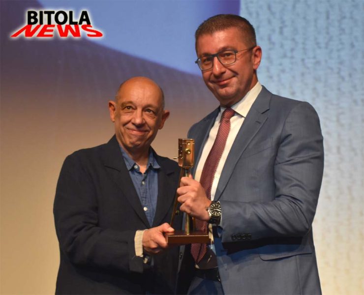 Премиерот Христијан Мицкоски на вечерашната свеченост ја додели наградата Златна камера 300 за животно дело на францускиот кинематографер, Бруно Делбонел.
