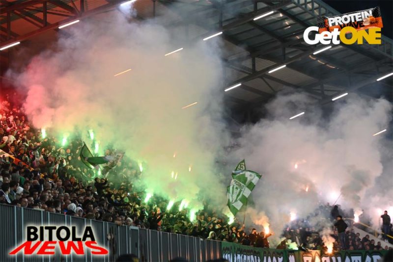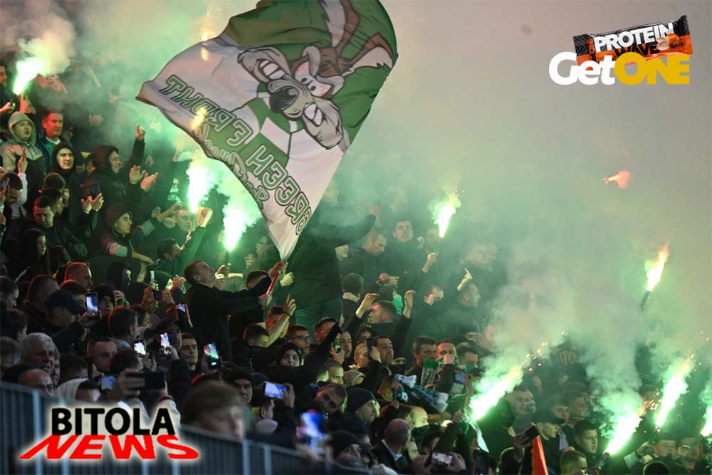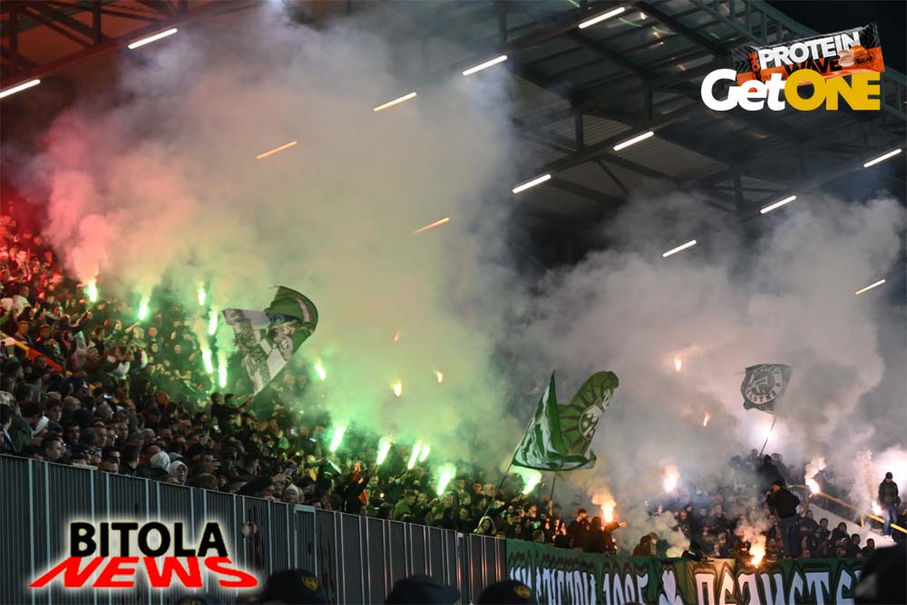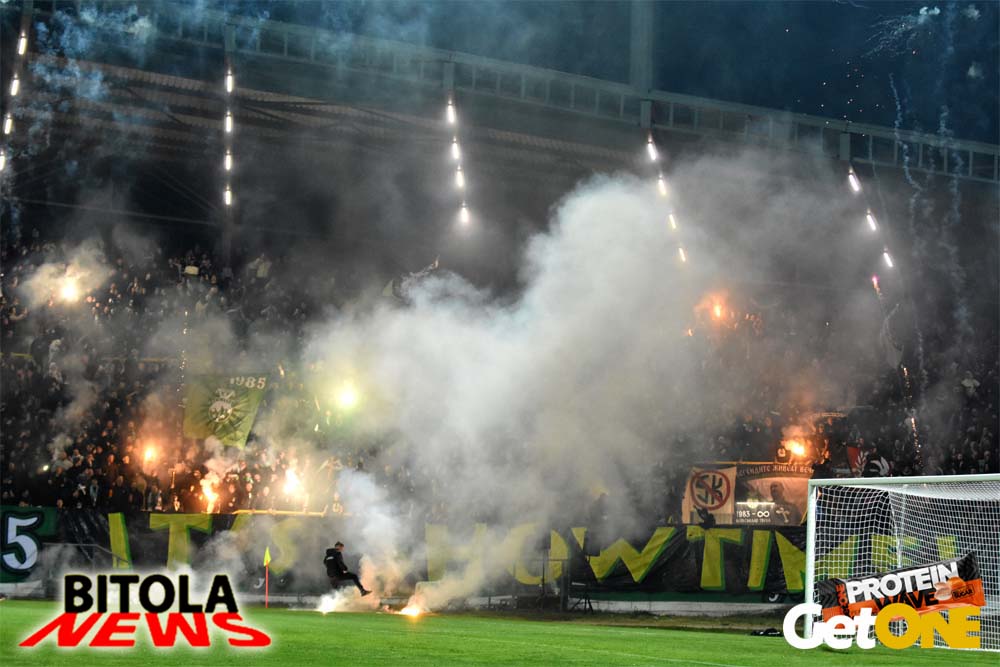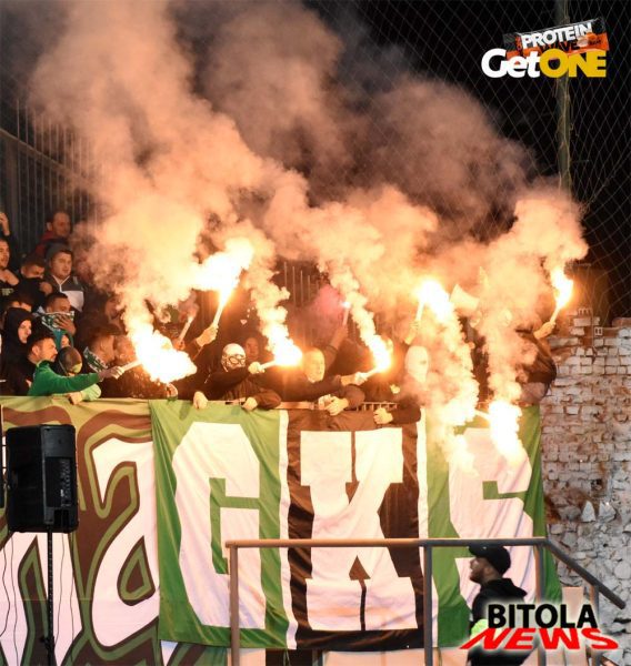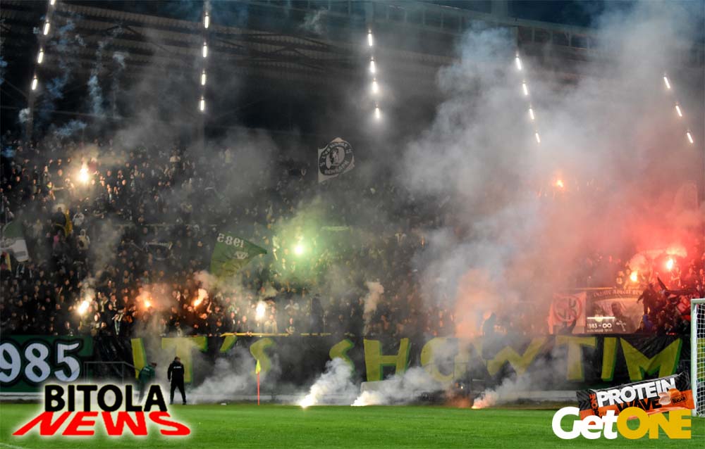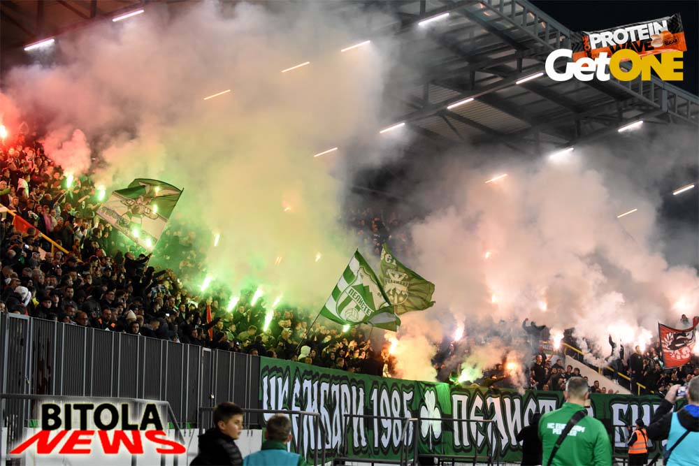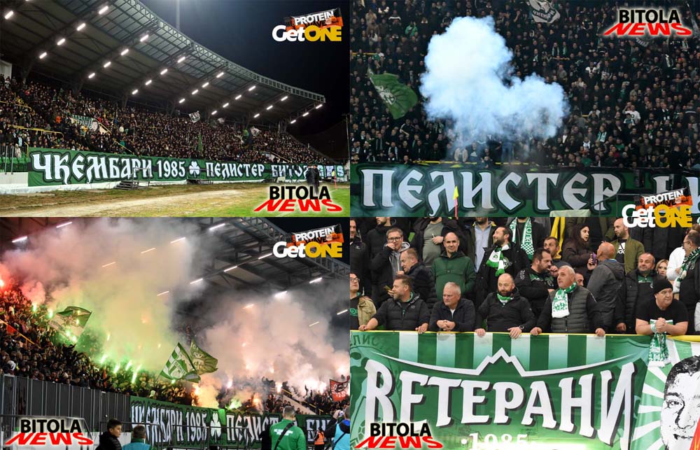А на трибините атмосферата од пред почетокот на натпреварот, песна, шалови, знамиња, транспаренти, бодрење, пиротехника, огномет… се во знак на поддршката на Пелистер и со цел да се дојде до победа над Вардар.