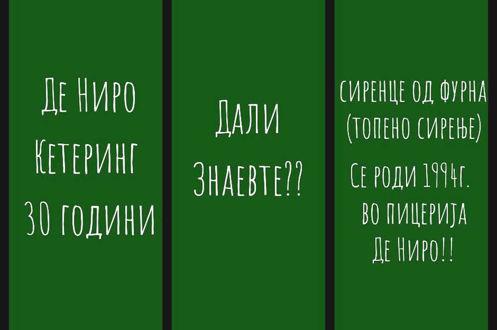 30 години – “Де Ниро кетеринг“ јануари 22, 2025 . Published in Комерција More from КомерцијаMore posts in Комерција »Ресторан “Белведере“ со единствен поглед на центарот на градотРесторан “Белведере“ со единствен поглед на центарот на градотНе мора да отворате, сé е кажано – пицерија “Шведскио“ на Широк СокакНе мора да отворате, сé е кажано – пицерија “Шведскио“ на Широк СокакБар “Манаки“: Сакаш да јадеш нешто необично?Бар “Манаки“: Сакаш да јадеш нешто необично?Најсреќниот шопинг досега: Откријте ја моќта на Минт Visa за опуштени празнициНајсреќниот шопинг досега: Откријте ја моќта на Минт Visa за опуштени празници“By Marieli“ кафетерии: Се што ти треба“By Marieli“ кафетерии: Се што ти треба