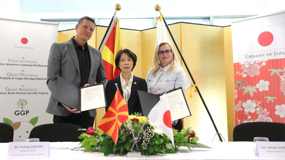Преку „Грант програмата за мали проекти за човекова безбедност (GGP)“ Јапонија обезбеди поддршка за реализација на проекти во ЈЗУ Здравствен дом Вевчани и основното училиште „Св. Климент Охридски“ од Битола.